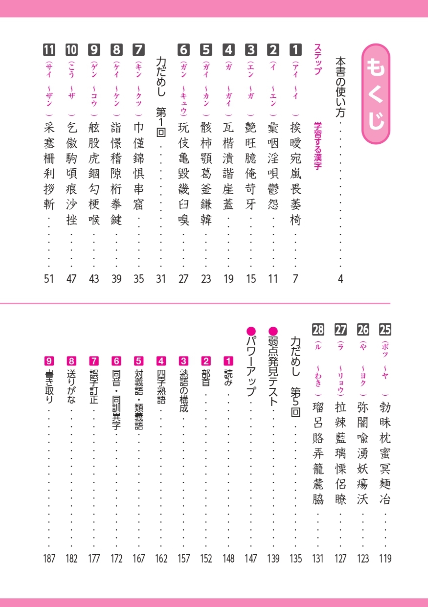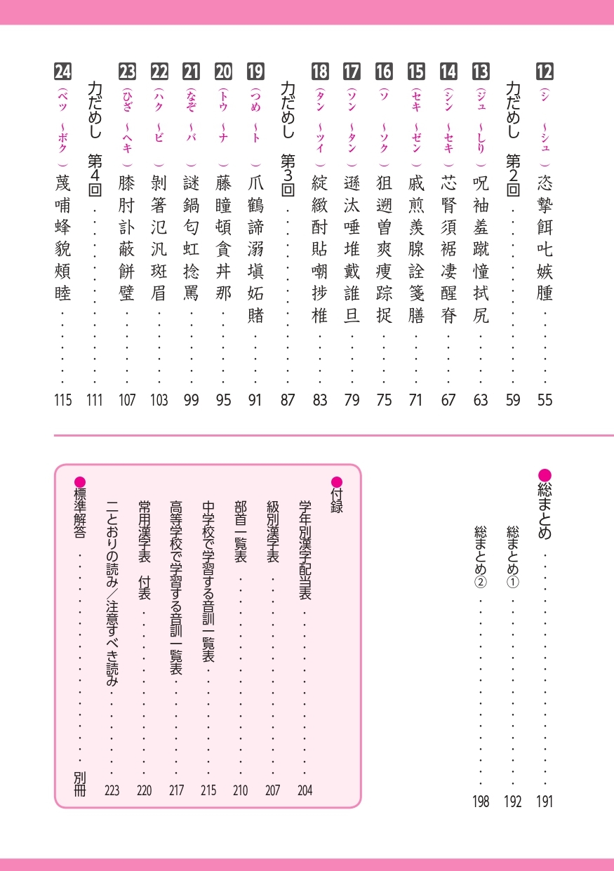| 『漢検 漢字学習ステップ』シリーズは累計発行部数800万部を突破! 公益財団法人 日本漢字能力検定協会が発行する漢字学習の定番教材! 漢検2級の新出配当漢字を五十音順に配列した漢字表で、一字ずつ学習できるステップ式問題集。 ◎漢字表で配当漢字をまとめて確認できる。 ◎実力確認や最終演習として利用できる「総まとめ」を巻末に収録。 ◎「パワーアップ」問題を特別収録。 ◎答え合わせに便利な別冊「標準解答」付き。 |