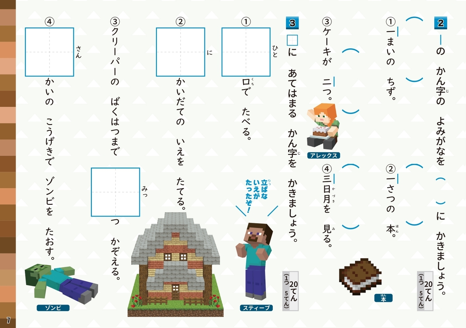 | 大人気ゲーム「マインクラフト」で学べるかん字ドリルが登場! 小学1年生で習う80のかん字をマイクラのキャラクターたちといっしょに学ぶかん字ドリルが登場しました! マイクラに登場するキャラクターたちのイラストがまんさいで、お子さまはマイクラの世界を楽しみながら、飽きることなくドリルに取り組むことができます。 また、単元ごとにミニテストがついているので、学んだことをしっかりと復習できます。 ドリルのイラストを使ったかきおろしのオリジナルシールつきで、1回分が終わるごとにシールを貼れるので、楽しく解き進められます。 監修者:加藤裕美子(大妻女子大学助教) |