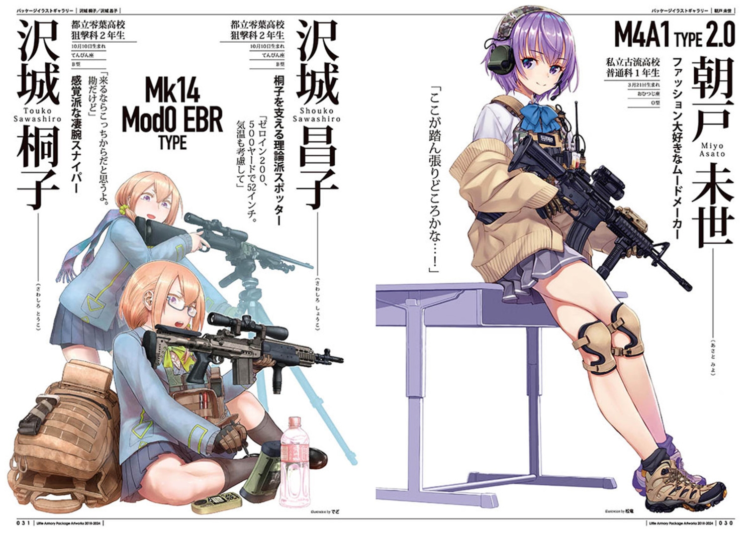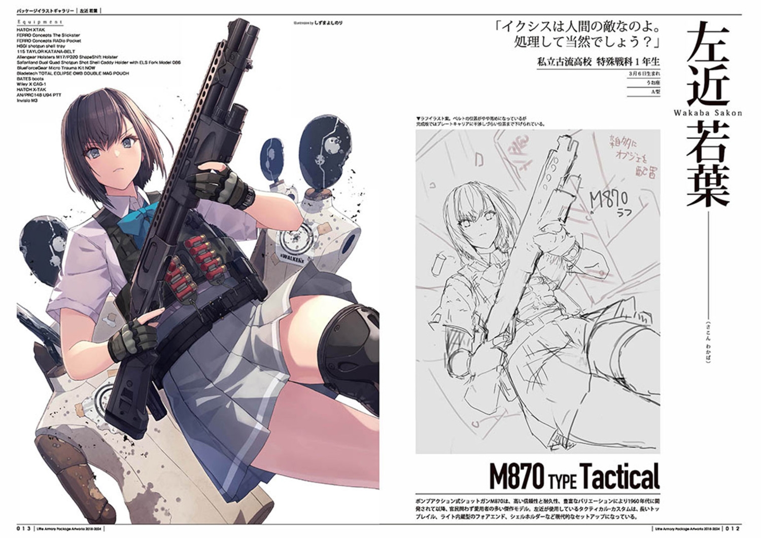 制服少女+装備+重火器という「リトルアーモリー」独自の世界観を楽しむのはもちろん、サバゲーなどのスタイリング資料にも最適な1冊です。