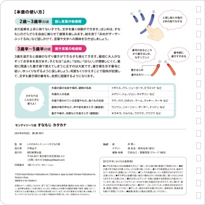 モンテッソーリ教育で人気の「砂文字板」が本になって登場! 特殊なざらざら加工が施されたカタカナ五十音を指でなぞって文字の正しい形を習得します。オノマトペを含むたのしいイラストも満載で、カタカナがきっと好きになる。対象は2歳以上から。