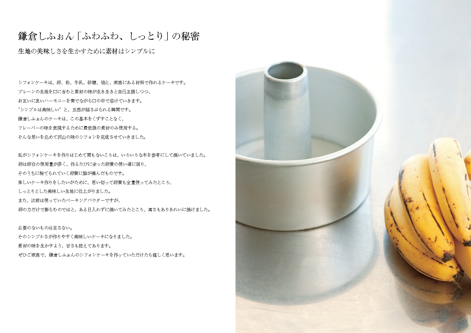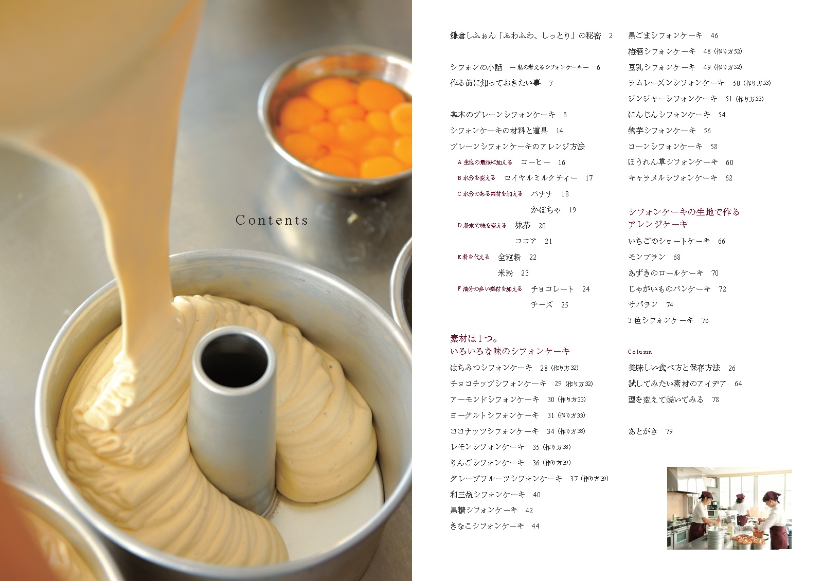 | 話題のシフォンケーキ専門店「鎌倉しふぉん」の待望のレシピ集。 あの「ふわふわ、しっとり生地」が誰にでも作れます! ・家庭にある材料で簡単に作れる ・全卵使用のため卵黄を余らせない ・17cmと20㎝型の両方を併記 -まえがきより- 鎌倉しふぉん「ふわふわ、しっとり」の秘密 --生地の美味しさを生かすために素材はシンプルに-- シフォンケーキは、粉、卵、牛乳、砂糖、油と、家庭にある材料で作れるケーキです。 プレーンの生地を口に含むと素材の味が生き生きと自己主張しつつ、 お互いに良いハーモニーを奏でながら口の中で溶けていきます。 "シンプルは美味しい"と、五感が揺さぶられる瞬間です。 鎌倉しふぉんのケーキは、この基本を崩すことなく、 フレーバーの味を表現するために最低限の素材のみ使用する。 そんな思いを込めて沢山のフレーバーケーキを完成させていきました。 私がシフォンケーキを作りはじめたての頃は、色々な本を参考にして焼いていました。 卵は卵白の使用量が多く、作るたびに余った卵黄の使い道に困り、 そのうちに捨てられていく卵黄に胸が痛んだものです。 楽しいケーキ作りをしたいがために、思い切って卵黄も全部使ってみたところ、 しっとりとした美味しい生地に仕上がりました。 また、以前は使っていたベーキングパウダーですが、卵の力だけで膨らむのではと、 ある日入れずに焼いてみたら、これがしっかりと綺麗に焼けました。 必要のないものは足さない。そのシンプルさが「作りやすく美味しい」ケーキになりました。 素材の味を生かすよう、甘さも控えてあります。 ぜひご家庭で、鎌倉しふぉんのシフォンケーキを作っていただけたら嬉しく思います。 <目次> 鎌倉しふぉんのシフォンケーキの「しっとり、ふわふわ」の秘密 作る前に知っておきたいこと ●基本のプレーンシフォンケーキの作り方 シフォンケーキの材料と道具 プレーンシフォンケーキのアレンジ方法 ●素材は1つ。色々な味のシフォンケーキ ●シフォンケーキの生地で作るアレンジケーキ コラム 1 美味しい食べ方と保存方法 2 試してみたい素材のアイデア 3 型を変えて焼いてみる ※本書は『市場のケーキ屋さん 鎌倉しふぉんのシフォンケーキ』(2010年小社刊)を再編集し、新版化したものです。 |