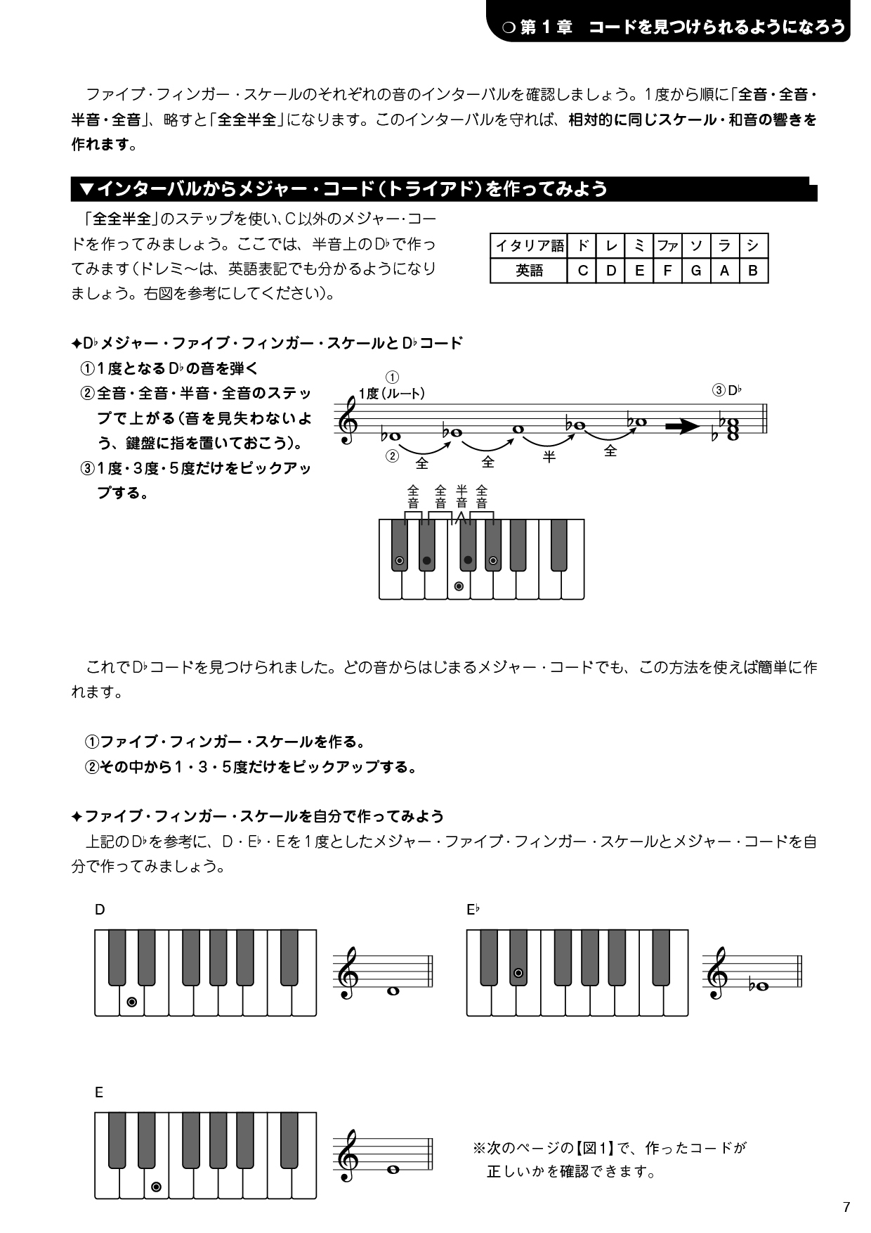 | メロディとコードから、瞬く間に両手でピアノが弾けるようになる本。 コードの覚え方、使い方はもちろん、メロディを輝かせるアレンジ方法や弾き方等をやさしく解説し、 後半は、パッと弾くための音楽理論や様々なアレンジのパターン、方法を学べる。 馴染のあるJ-popの曲を題材にしているので、楽しみながら練習できる。 【目次】 ● 第1章 コードを見つけられるようになろう STEP1-1 メジャー・ファイブ・フィンガー・スケールとメジャー・コード STEP1-2 マイナー・ファイブ・フィンガー・スケールとマイナー・コード STEP1-3 4和音のコード ● 第2章 転回形でコードのバリエーションを増やそう STEP2-1 転回形でバリエーションを増やそう STEP2-2 トライアドの転回形を弾いてみよう STEP2-3 ブロークンとブロックでコードを弾こう ● 第3章 メロディを彩る右手の使い方 STEP3-1 ストロングとウィーク STEP3-2 キーとコードの関係を理解しよう STEP3-3 アプローチ・ノートを練習しよう STEP3-4 メロディに変化をつけてみよう1 STEP3-5 メロディに変化をつけてみよう2 ♪First Love/宇多田ヒカル ● 第4章 曲のグルーヴ、印象を変える左手のアレンジ STEP4-1 トライアドを中心に左手の伴奏を考えよう ♪帰ろう/藤井 風 STEP4-2 ドラマーを意識した伴奏パターン ♪空も飛べるはず/スピッツ STEP4-3 スウィング・ジャズ風や16ビートで弾いてみよう ♪パプリカ/Foorin ♪夜に駆ける/YOASOBI ●エクササイズ 転回形を使うための基礎訓練 |