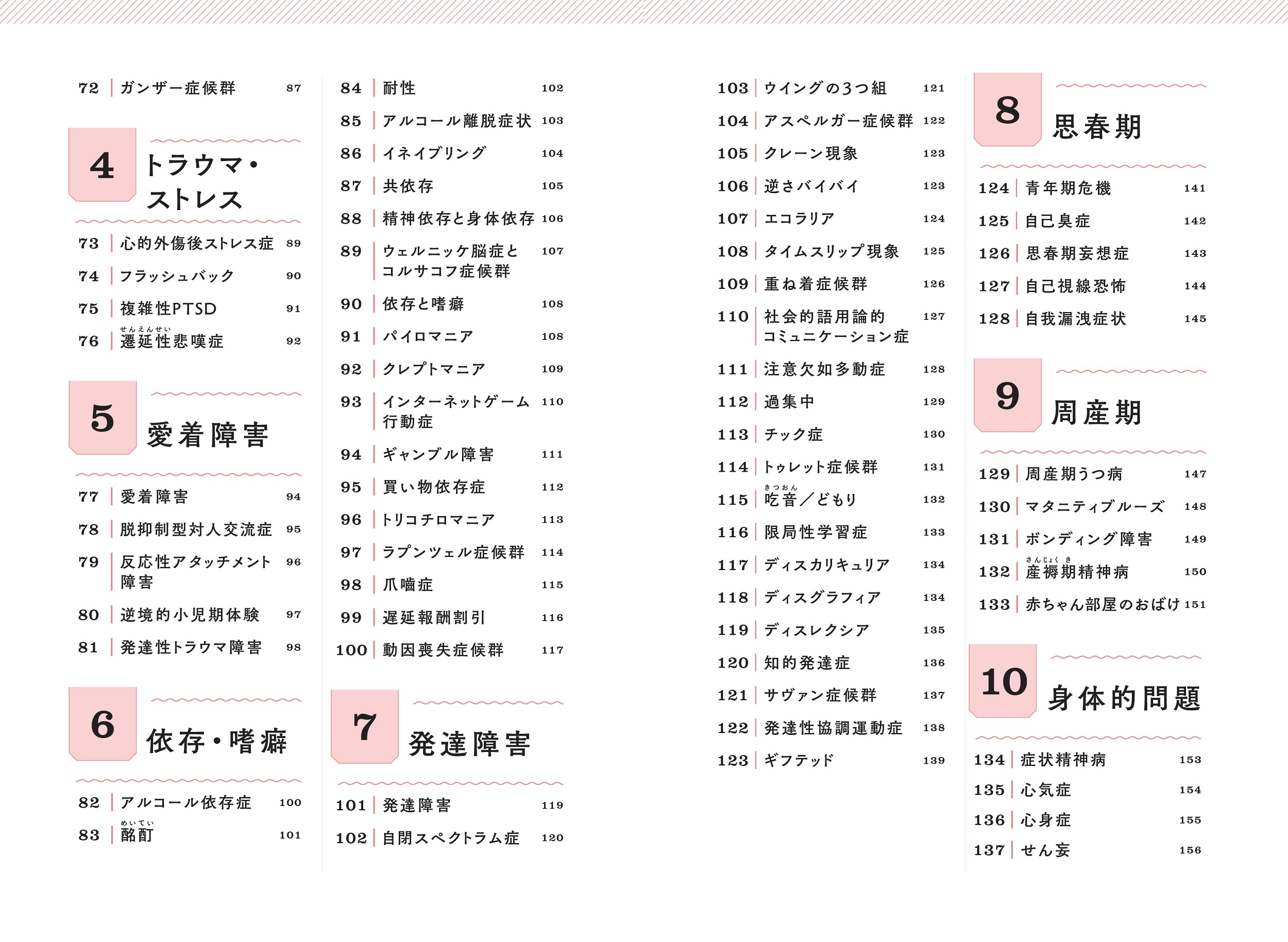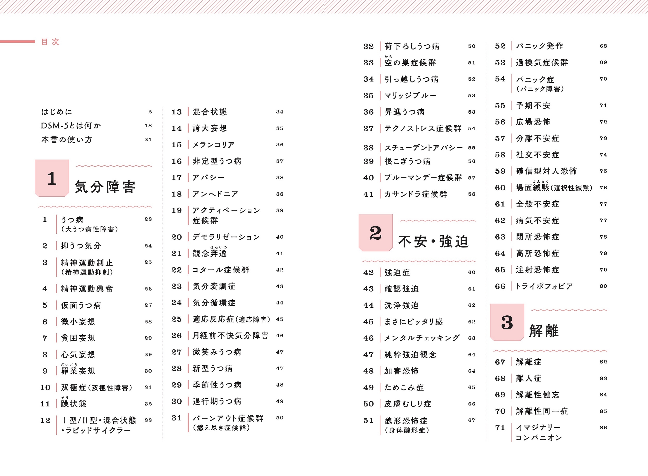 | 「こんな症状、私だけ?」「あの人は、なんであんなことをしているの?」 本書を読めば、自分が悩んでいることに名前があるとわかるかもしれません。精神症状を学ぶことで、あなたとは少し異なる言動を取る人がいても、「ありがちなことで、何も問題はないんだ」と理解を深められるかもしれません。 本書は、明らかな精神障害によるものから、病気とは言えないが誰にでも起こり得るものまで含め、304にも及ぶ精神症状について解説した一冊です。 【対象読者】 ・「教養として」一般の人に ・「どの分野でも役立つ」看護学生に ・「情報のアップデートとして」医療者に 【特徴】 ・本格的な知識なのに、一つひとつの文章が短く、どれも1分以内で簡単に読める ・親しみやすいクマのイラストが学びの手助けをしてくれる 【目次】 気分障害/不安・強迫/解離/トラウマ・ストレス/愛着障害/依存・嗜癖/ 発達障害/ 思春期/ 周産期/ 身体的問題/ 睡眠/ 性/ 摂食障害/ 統合失調症/ 幻覚・妄想/ 素行/ パーソナリティ症/ 認知症 【著者メッセージ】 この本を通じて、医療従事者でなくても、心の問題にはさまざまなことが起こり得ることを感じていただけるでしょう。また、精神科医をはじめとする精神科の医療者の方々にとっても、知らなかった症状に出会い、すでに知っている症状についてさらに知識を深めることに貢献できることを期待しています。 |