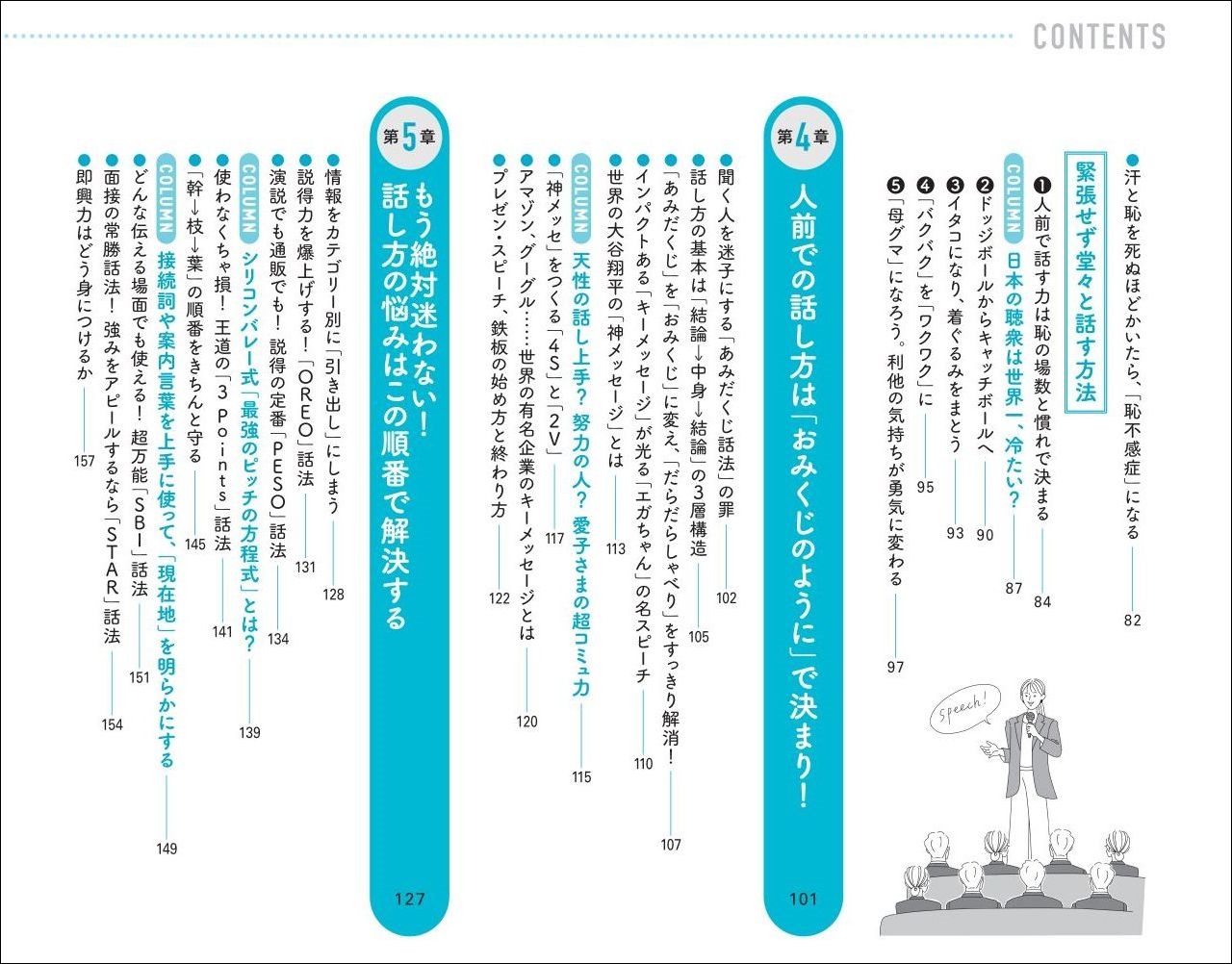 | ◎「プレゼン」「スピーチ」「会議」「あいさつ」「面接」「講演」全部使える! ◎ジェスチャーからアイコンタクト、声の出し方まで完全図解・解説。読めばあっという間に上達する! ◎「堂々と話せる人」になると、一生得をする! あなたの「好感度」も「評価」も、いっきに爆上がり! もう緊張しない!ちゃんと伝わる! 「ワンランク上の話し方・伝え方」が、今日からできる! 【人前での話し方には「正解」がある】 ★「堂々とした声」は3秒で出せる! ★魔法の「つかみ」術は10パターン! ★「最高の自己紹介」も超簡単! ★「手の位置」や「ジェスチャー」は「これ」がベスト! 20万部突破!大好評「世界最高」シリーズの著者が社長・企業幹部に「家庭教師」として教えている「世界最高スキル」が1冊に! 読めば、1日で人生が変わる! 世界最高の教科書! |