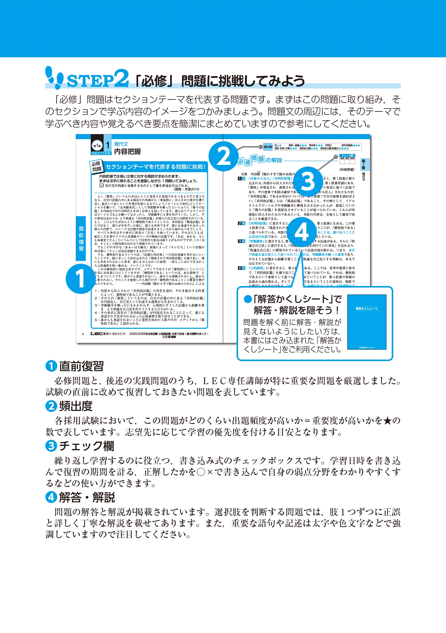 | ☆最新2024年度実施の試験問題を収録! ☆公務員試験は、解いた数だけ合格が近づく! 過去問を『繰り返し解く』ことで合格が近づく! 『解きまくり』は合格に必要な問題を豊富に収録し、 「本気で合格を目指す」受験生の皆さまを全力でバックアップ! ◆◇◆『解きまくり』6つの特長◆◇◆ 1.最新!「2024年の本試験問題」を収録! 公務員試験は年々変化しています。 最新年度の過去問を収録できるのは、毎年改訂の『解きまくり』ならでは! 本書で学習すれば、いち早く最新の試験傾向を把握できるので安心して学習できます。 2.LECだからできる!入手困難な地方上級再現問題も収録! 『解きまくり』は、なかなか手に入りにくい地方上級の再現問題を数多く収録しています。 これぞLECの情報力ならでは!受験生のニーズに応えます! 3.充実の問題数! 公務員試験合格には、類似問題を繰り返し解くことが大切。 本書は十分な量の良質な過去問と、詳細な解説を掲載していますので、繰り返し解くことにより、知識の定着と解法パターンの習得を図ることができます。 これぞ合格への近道です。 4. 段階的な学習が可能! 本書の問題は、必ずマスターすべき「必修問題」と、<基本>と<応用>の2つのレベルの「実践問題」で、無理なくステップアップできる構成になっています。 (1)まず手始めに代表的な問題「必修問題」で、このセクションでの学習の要点を掴みます。 (2)次に「実践問題」で本格的に過去問に取り組みます。 1周目は「基本レベル」を中心に解き、2周目からは、志望先で出題頻度が高い「応用レベル」にチャレンジ! 5.効果的な学習を可能にするコンテンツ 自分の志望先の傾向がわかる「出題傾向分析」、解くためのベースとなる「インプット(講義ページ)」、直前期に復習すべき問題をピックアップした講師厳選「直前復習」など、メリハリをつけて学習できる工夫が満載です。 6.行政書士試験対策の補強にも有効! 多くの行政書士受験生が、さらに得点力をつけるために、行政書士の過去問とあわせて本書を活用されています。 ※本書は、地方上級、国家一般職、国税専門官、財務専門官、労働基準監督官、裁判所職員、国家総合職などに対応しています。 |