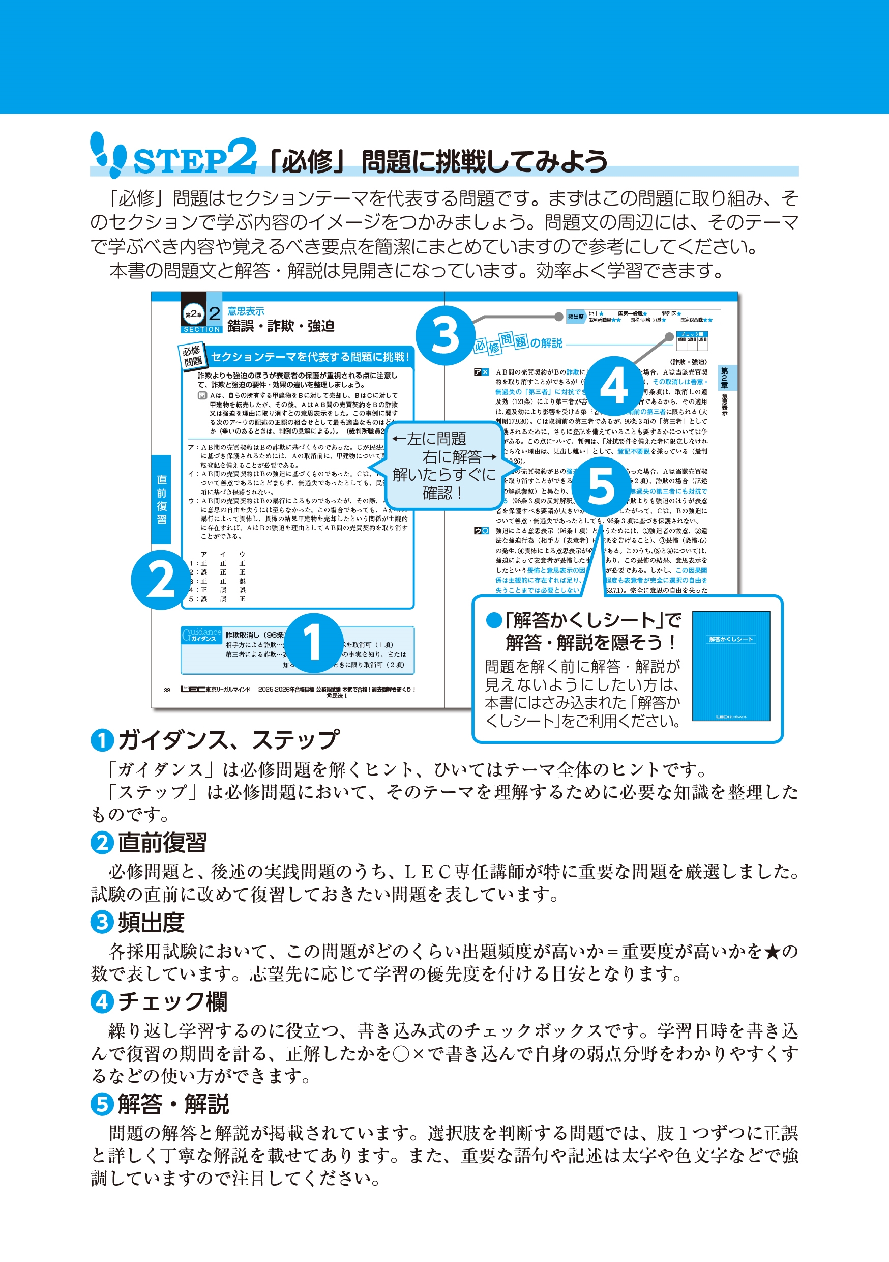 | ☆最新2024年度実施の試験問題を収録! ☆公務員試験は、解いた数だけ合格が近づく! 過去問を『繰り返し解く』ことで合格が近づく! 『解きまくり』は合格に必要な問題を豊富に収録し、 「本気で合格を目指す」受験生の皆さまを全力でバックアップ! ◆◇◆『解きまくり』 6つの特長◆◇◆ 1.最新!「2024年の本試験問題」を収録! 公務員試験は年々変化しています。 最新年度の過去問を収録できるのは、毎年改訂の『解きまくり』ならでは! 本書で学習すれば、いち早く最新の試験傾向を把握できるので安心して学習できます。 2.LECだからできる!入手困難な地方上級再現問題も収録! 『解きまくり』は、なかなか手に入りにくい地方上級の再現問題を数多く収録しています。 これぞLECの情報力ならでは!受験生のニーズに応えます! 3.充実の問題数! 公務員試験合格には、類似問題を繰り返し解くことが大切。 本書は十分な量の良質な過去問と、詳細な解説を掲載していますので、繰り返し解くことにより、知識の定着と解法パターンの習得を図ることができます。 これぞ合格への近道です。 4. 段階的な学習が可能! 本書の問題は、必ずマスターすべき「必修問題」と、<基本>と<応用>の2つのレベルの「実践問題」で、無理なくステップアップできる構成になっています。 (1)まず手始めに代表的な問題「必修問題」で、このセクションでの学習の要点を掴みます。 (2)次に「実践問題」で本格的に過去問に取り組みます。 1周目は「基本レベル」を中心に解き、2周目からは、志望先で出題頻度が高い「応用レベル」にチャレンジ! 5.効果的な学習を可能にするコンテンツ 自分の志望先の傾向がわかる「出題傾向分析」、解くためのベースとなる「インプット(講義ページ)」、直前期に復習すべき問題をピックアップした講師厳選「直前復習」など、メリハリをつけて学習できる工夫が満載です。 6.行政書士試験対策の補強にも有効! 多くの行政書士受験生が、さらに得点力をつけるために、行政書士の過去問とあわせて本書を活用されています。 ※本書は、地方上級、国家一般職、国税専門官、財務専門官、労働基準監督官、裁判所職員、国家総合職などに対応しています。 |