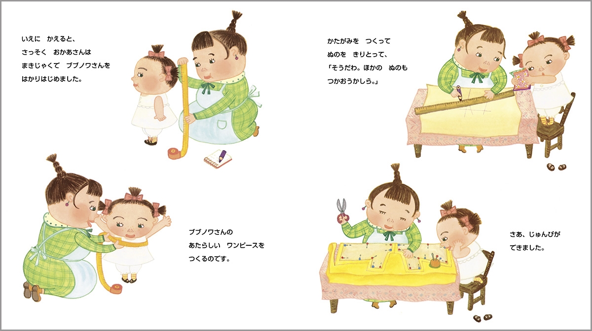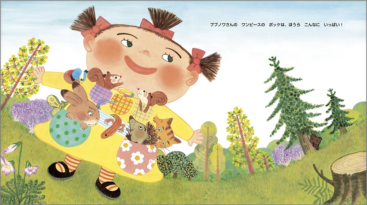 ある日、お母さんにつくってもらったポッケが10こもあるワンピースを着て森にでかけたブブノワさん。そしたら、動物たちがどんどんポッケに入ってきて、ほうら、ポッケはこんなにいっぱい!