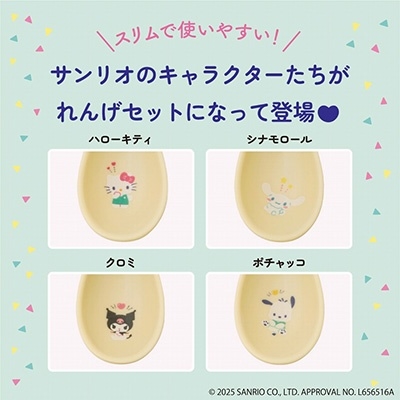 | サンリオのキャラクターたちがかわいいれんげセットになって登場♪ハローキティ、シナモロール、クロミ、ポチャッコがかわいいれんげになりました! スリムなサイズで使いやすく、デザートにもピッタリで、いろんな用途で使えるのがうれしいポイント♪4本セットなので、突然の来客にも大活躍。お子さまも使いやすいサイズで、家族みんなで使えます。 毎日の食卓をサンリオキャラクターズのれんげといっしょに、さらにおいしくハッピーに♪どのキャラクターのれんげを使うか迷っちゃう…! 各サイズ(約):長さ14.3×幅4cm[最大] |