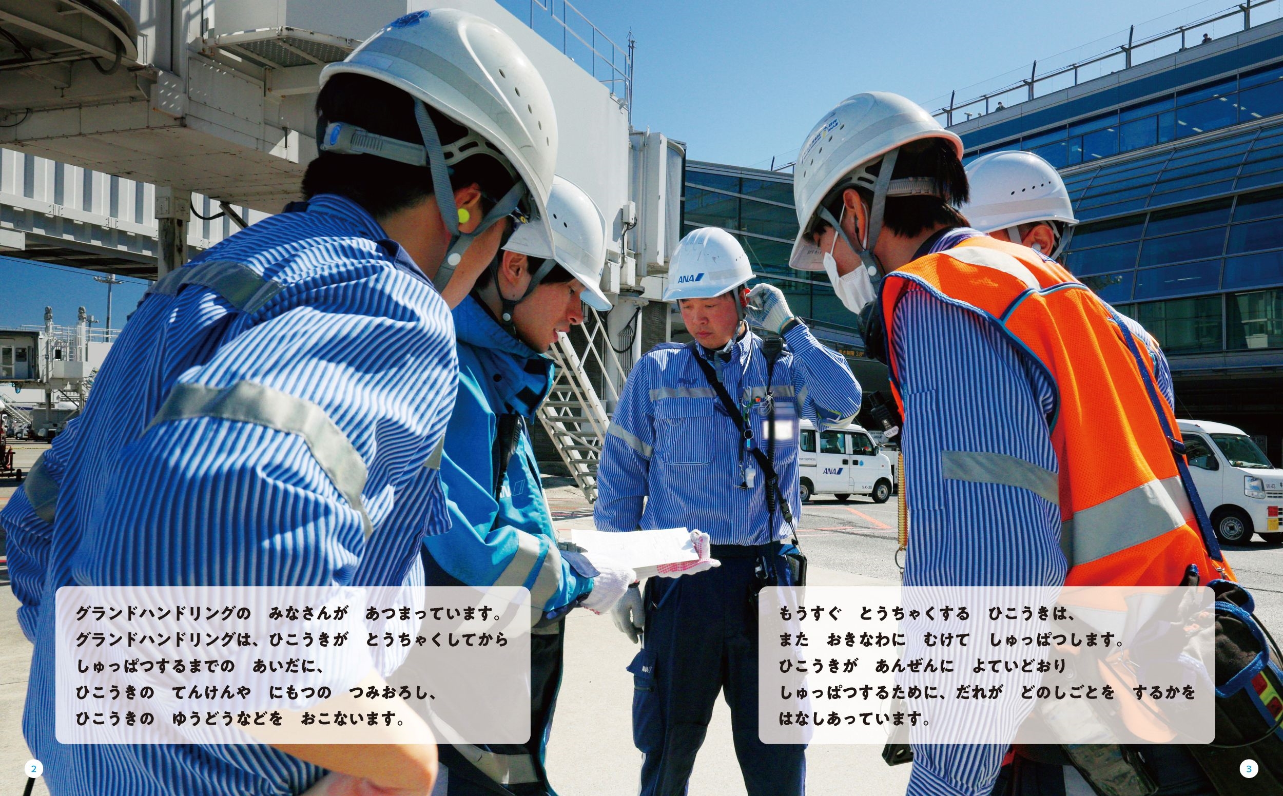 | 飛行場ではたらくプロフェッショナルたち、グランドハンドリングを知っていますか? 飛行場を見てみましょう。 ちょうどひこうきが沖縄から羽田空港に到着しました。次の出発までは55分。 グランドハンドリングのひとりが駐機場で両手をひろげ、ひこうきに合図を送っています。 ひこうきが完全に止まったらここから時間とのたたかいです。 トーイングトラクターを運転し、荷物を出して、入れて、機体の安全もしっかり確認。 チーム全員でひこうきの到着と出発を支えています。 さあ出発の時刻になりました。ひこうきを誘導路まで導きます。 ピー! 航空機牽引車のクラクションが鳴り、 プッシュバックが始まります! 全日本空輸株式会社(ANA)、ANAエアポートサービス株式会社のご協力のもと、 子どもも大人も楽しめる迫力満点の写真絵本ができました。 飛行場で行われている「すごい!」仕事をぜひご覧ください。 |