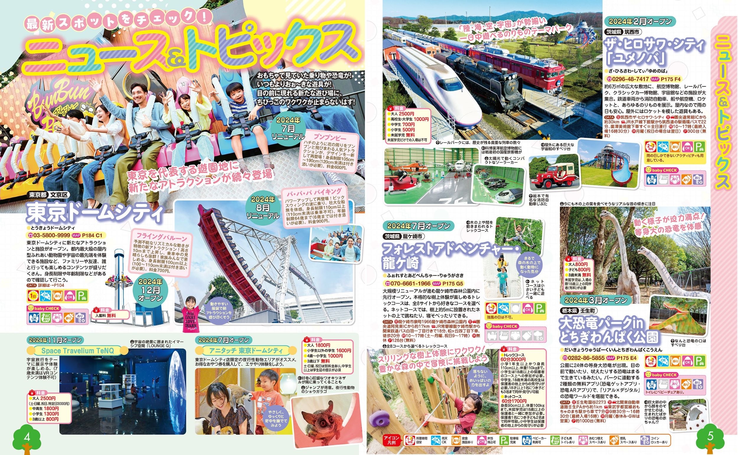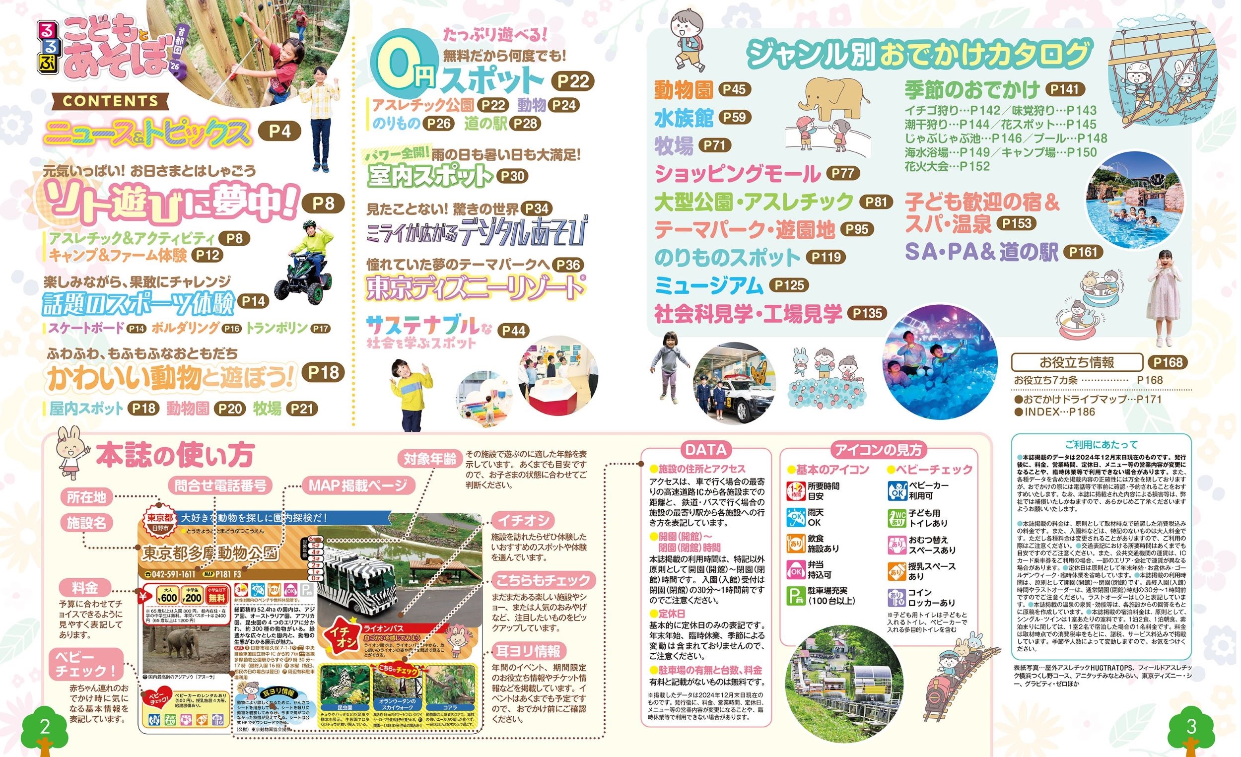 | ◎スマホやタブレットで使える便利な電子書籍付き ◎電子レジャーチケット「200円クーポン」でお得旅 子連れでのおでかけスポット探しはこの1冊におまかせ! 首都圏エリアのニューオープン情報に加えて スケートボードやボルダリング、トランポリンなど、注目のスポーツが楽しめるスポット情報までご紹介。ほかにも、0円スポットやアスレチック、雨でもOKなスポットなど、ママ、パパが助かるジャンルがたくさん!子ども用トイレやおむつ替えスペースなどの施設データもわかりやすいアイコンですぐにチェックできるので、とっても便利です。 <主な特集内容> 1 ニュース&トピックス ニューオープン&リニューアルした遊び場を紹介! 東京ドームシティ、大恐竜パークinとちぎわんぱく公園 ほか 2 ソト遊びに夢中! ◆アスレチック&アクティビティ 長井海の手公園ソレイユの丘、フィールドアスレチック横浜つくし野コース、軽井沢おもちゃ王国 ほか ◆キャンプ&ファーム体験 千葉ウシノヒロバ、マザー牧場 グランピング THE FARM、酪農王国オラッチェ ほか 3 話題のスポーツ体験 ◆スケートボード クロスポ 八王子店、H.L.N.A SKATEPARK ほか ◆ボルダリング ディー・ボルダリング網島、トンデミ幕張 ◆トランポリン グラビティ・ゼロ、トランポリンパーク トランポランド東京ベイサイド、トンデミ平和島 4 かわいい動物と遊ぼう! アニタッチみなとみらい、動物が暮らす森アニミルお台場店、マザー牧場 ほか 5 0円スポット こども自然公園、板橋こども動物園、京急ミュージアム ほか 6 室内スポット 東京あそびマーレ、京王あそびの森HUGHUG<ハグハグ>、 屋内・冒険の島 ドコドコ ほか 7 デジタルあそび 森ビル デジタルアート ミュージアム:エプソン チームラボボーダレス ほか 8 東京ディズニーリゾート Newオープン ファンタジースプリングス情報満載! <ジャンル別におでかけスポットを徹底ガイド!> 動物園/水族館/牧場/ショッピングモール/大型公園・アスレチック/テーマパーク・遊園地/のりもの/ミュージアム/体験・工場見学/季節のおでかけ/子ども歓迎の宿&スパ・温泉/SA・PA&道の駅 ※200円クーポンの利用期間は販売終了まで ●「るるぶ」は、「みる」「食べる」「遊ぶ」を中心におすすめエリアやスポットを徹底紹介した旅行ガイドブックです。 |