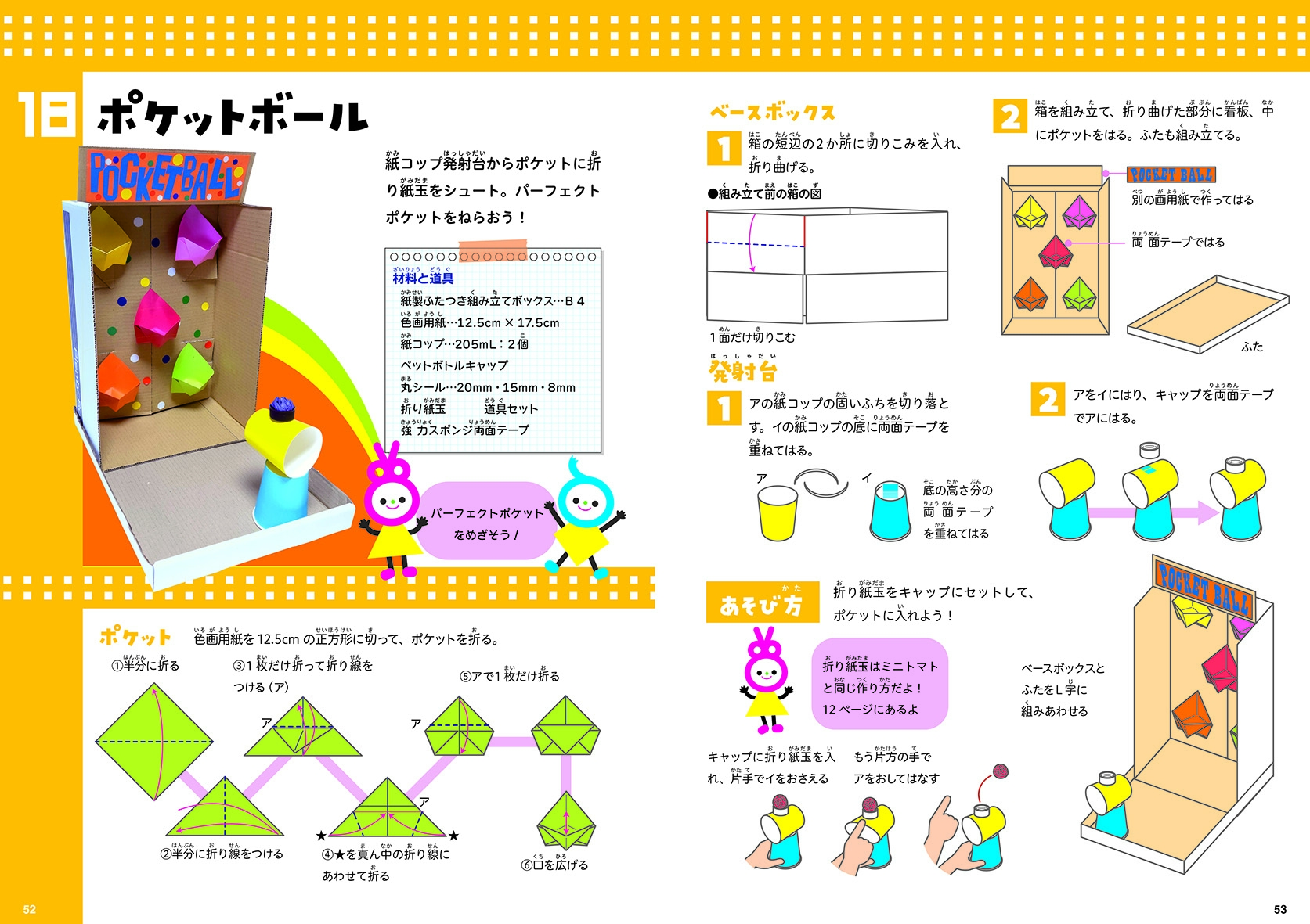 | 身近にある材料と道具で、飾ってもあそんでも楽しい工作を作ろう。友だちとお店やさんごっこするのもいいね。 「おいしい工作」「行事の工作」「あそべる工作」。ぜ~んぶ集めてあそびの市場<アソビバザール>をみんなで楽しもう! |