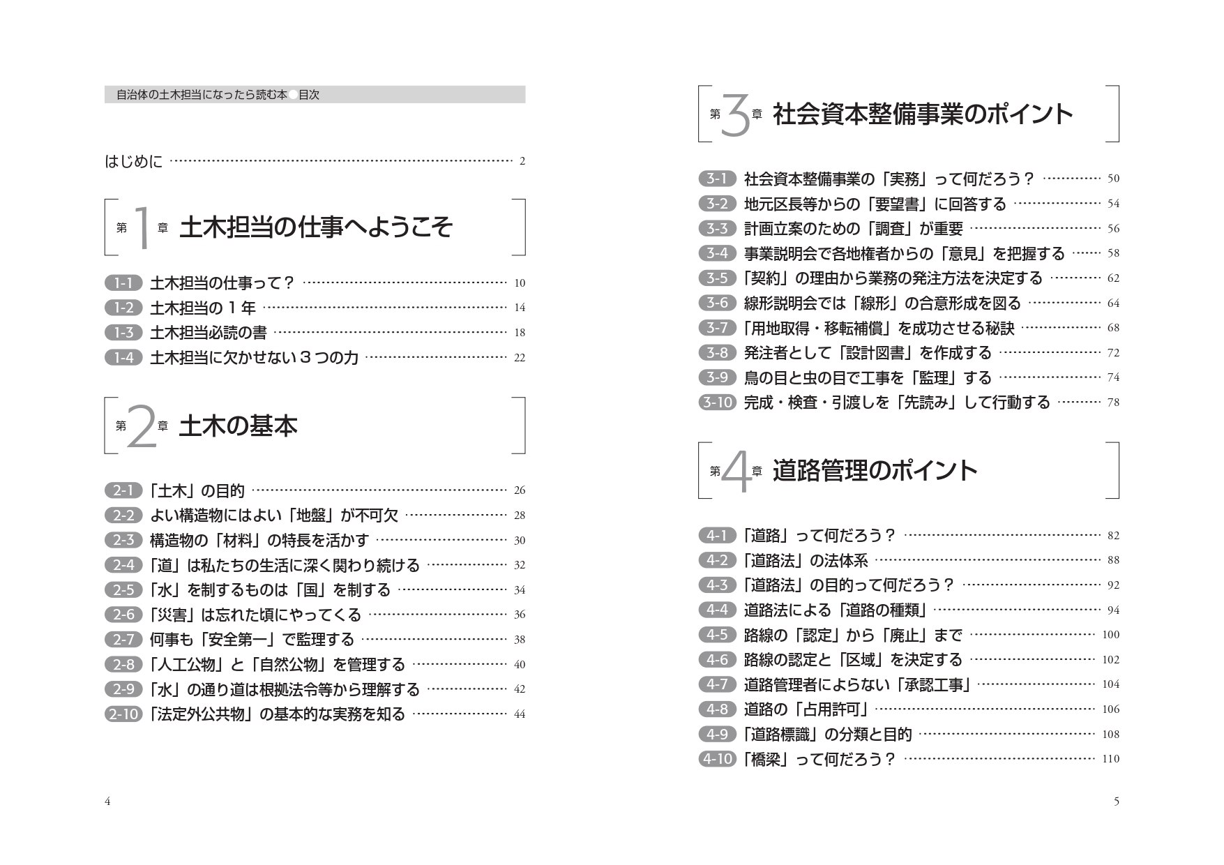 | 自治体の「土木担当」の実務を解説する唯一の本! 道路・河川・橋梁等の社会資本の整備・管理を担う職員に向けて、土木の基礎知識から実務の手順・留意点までを豊富な図表とともに解説した、担当者必携の一冊。 |