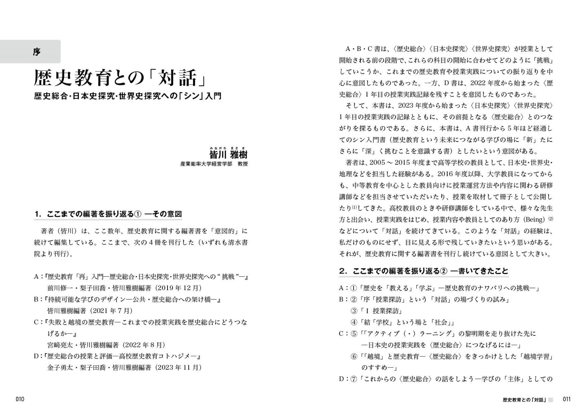 前川修一 「歴史教育「シン」入門 ―歴史総合から世界史探究・日本史探究へ―」 Book
