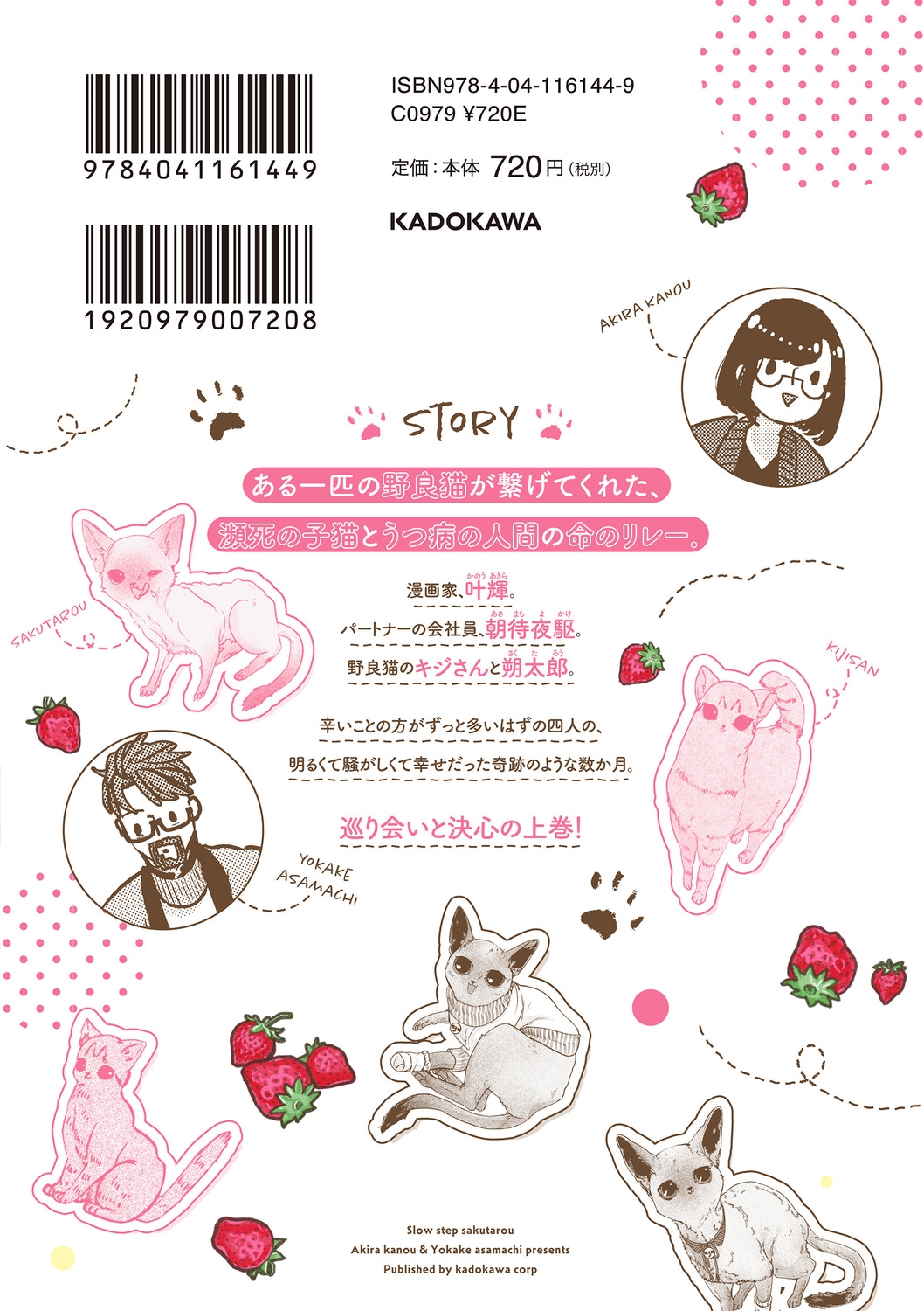 | 漫画家の叶輝とパートナーの朝待夜駆の家の軒先に、ある日、やつれた子猫が連れて来られた。 連れて来たのは地域猫のキジトラ。 数年前からうつ病に苦しみ、休職を繰り返す朝待と家計を支える叶 そして、ある病気と闘う朔太郎。 辛いことの方が断然多い三人の、明るく幸せだった日々。 会社や社会で上手くいかずもがいている人、 飼い猫や野良猫との付き合い方を模索している人、 病気の家族を支えている人、 そんな人々に届いて欲しいホントに起きた物語。 |