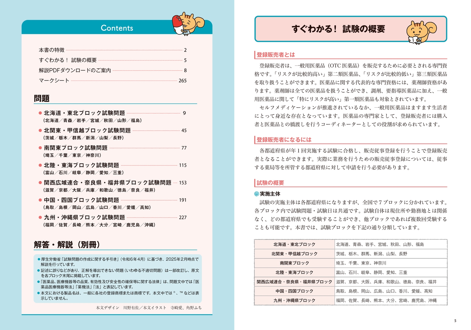 | オールスター講師陣が徹底解説。最新問題と受験地域の対策ができる王道問題集! ●絶対合格なら受験地域の対策は欠かせません。全国版だから他社のテキスト購入者にも最適。過去問題集の決定版【B5サイズ】● 【手引き「令和6年4月版」に対応】 ★試験対策講師のオールスターが最新過去問題を徹底解説 ★問題は本試験形式の1段組みで見やすい ★2色カラー印刷+ポイント満載の別冊解説。抜群のわかりやすさを追求 ★令和6年度全国7ブロック840問を収録(解説は令和6年4月手引きに準拠) ★令和5年度・4年度実施分のPDF解説が付属(解説は試験実施当時の手引きに準拠) ●本書の特徴 【その1】 トップ講師陣が解説 登録販売者試験対策で圧倒的人気の石川達也・鎌田晃博・村松早織・高橋伊津美講師が執筆。 ポイントを押さえた解説で合格ポイントが自然と身につく。 【その2】 別冊は2色カラー紙面+コメント解説付 別冊解説は2色カラー紙面だから解答のポイントが一目でわかる。大事なところはコメント形式や図解で説明。周辺知識も手に入る。 【その3】 最新傾向の把握と受験地域の対策が万全に 令和6年度実施の全国試験を収録。十分な演習量と受験地域の対策ができるから、この1冊でアウトプットは完成。 |