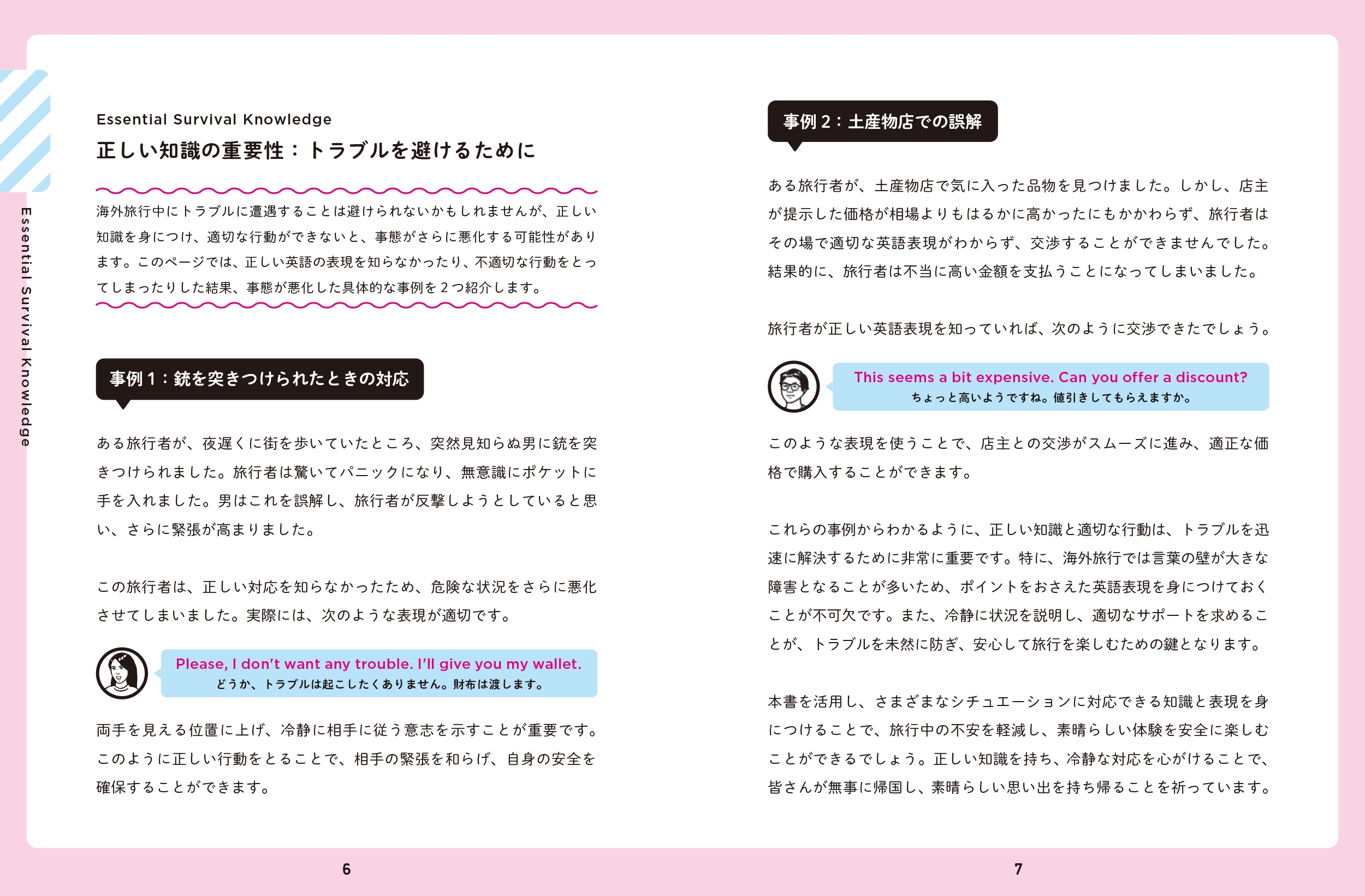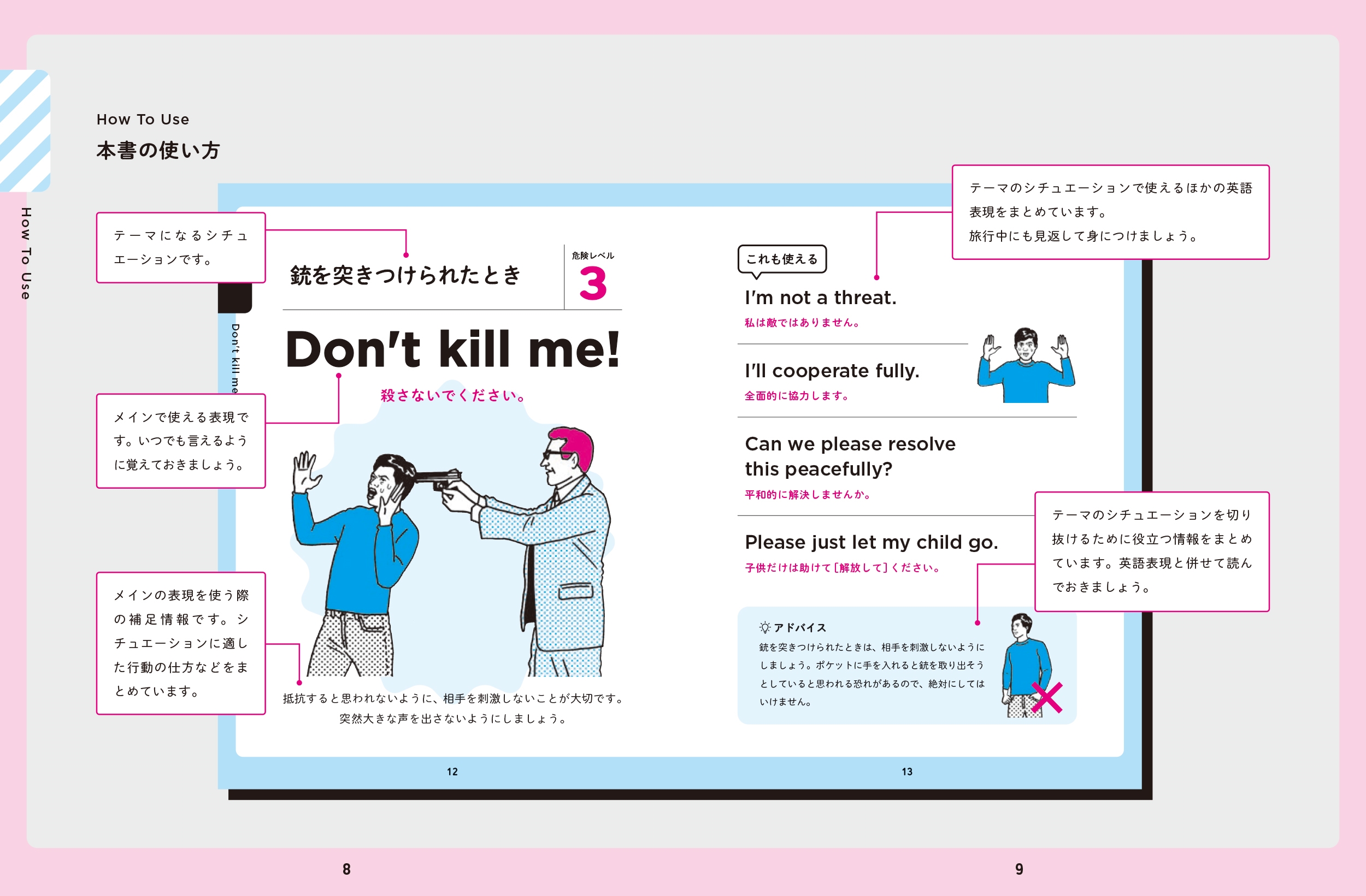 | ・海外滞在中に起こりうるトラブルに対応するための英会話集! ・トラブルの際にとるべき行動、とってはいけない行動などの役立つ情報も満載! ・危険レベルを3 段階に分けて、危険度の高いシチュエーションから紹介! ・体調不良などのときに使える便利な巻末資料つき! ・海外に行く人は必携の1冊! |
