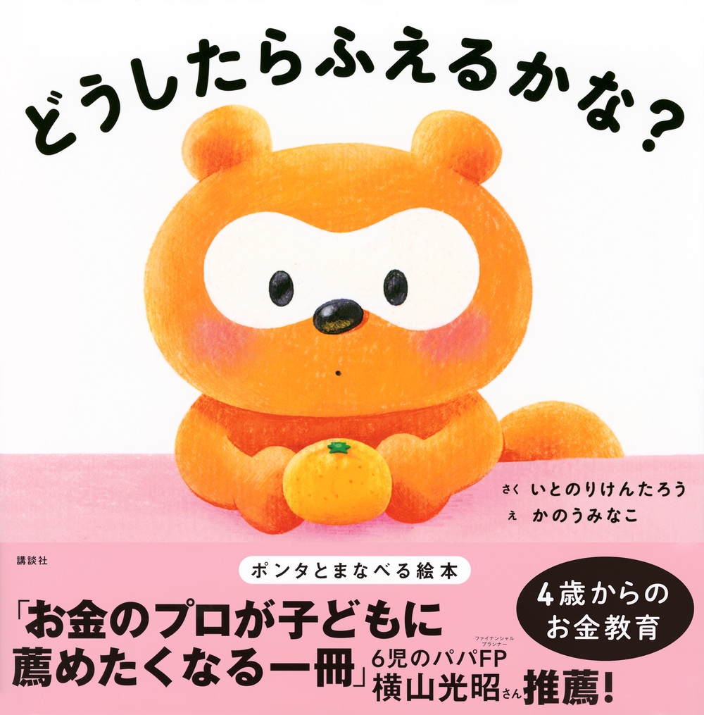 | ●内容紹介 4歳から「お金のセンス」が身につく絵本。 SNSフォロワー144万人超え(2025年2月時点)の人気たぬきのポンタが「1個のみかん」を「100個」増やしながら「お金を増やすセンス」を身につけます。 ──「お金のプロが子どもに薦めたくなる一冊」 みかんをふやす物語を読みながら、お金の知識が身につくことを確信できる絵本です。 子どもはじぶんで考えて頑張ったことは、しっかり知恵や知識となって身につきます。 大切なお金とのつきあい方を学ぶためにも、ぜひお子さんも大人も読んで欲しいです。 6児のパパFP(ファイナンシャルプランナー)横山光昭さん推薦! この絵本は、ポンタが大好物の「みかん」を増やすために一生懸命知恵を絞り、ジュースにしたり、アイスにしたり工夫して、 最終的にたくさんのみかんで、自分も家族も友達も幸せにするお話です。 このお話で子どもたちに伝えたいテーマは「自分で考えて増やす」ことと、そして「誰かの役に立てる喜び」です。 巻末に「おとなのみなさまへ」解説つき。絵本を読んだあと、子どもの想像力と考える力を伸ばしてくれるヒントになります。 |