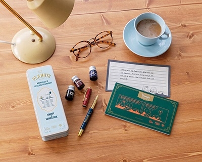 封入特典 | 万年筆 / インクボトル×3色 / 缶ケース / 一筆箋 |
