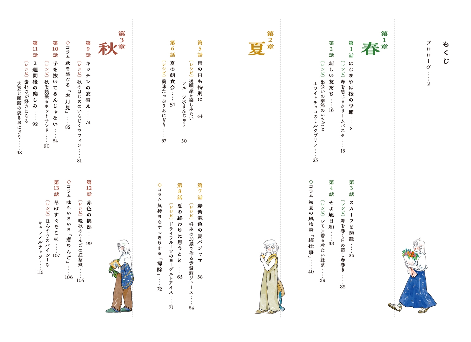 | こんな心豊かなマダムに出会いたかった―― 主人公のキコとマダム節子さんは、ひょんなことで出会い意気投合します。空の色、風の匂いに心をとめて、日本の四季のうつろいを感じながら楽しみを集めていく、世代を超えた2人の愛おしい暮らしの物語。 薬味たっぷりおにぎり、紫蘇ジュース、いちじくマフィン、ホットサンド、りんごの紅茶煮、金柑の甘露煮、太巻き寿司……キッチンで迎える四季折々のおいしいレシピ付き! 初夏の風物詩「梅仕事」や、お祝いを彩る「かまぼこ飾り切り」、掃除や手帳の使い方、「二十四節気と七十二候」など、コラムページと描き下ろしも充実! |