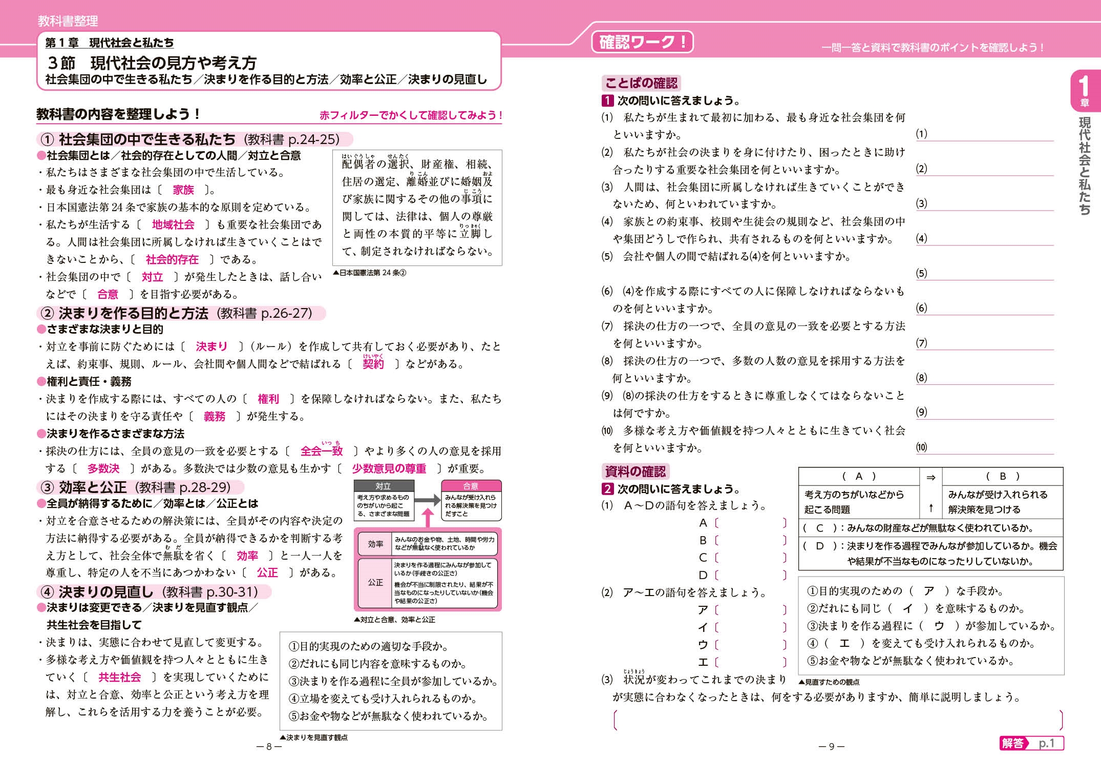 | 東京書籍版教科書「新編 新しい社会 公民」に完全準拠した「ワーク+定期テスト対策」教材。 教科書の基礎から定期テスト対策までを一冊にまとめて完全攻略。 例題と基本問題で学習内容を完全理解。 授業の予習・復習にピッタリ! ・小学校から今までの学習を振り返る、ウォーミングアップ問題 ・教科書に完全準拠 ・学習した内容が理解できたかどうかを基本的な問題で確認 実践的な問題で理解度アップ。 中間・期末テスト対策もバッチリ! ・学習した内容の理解を定着させる、まとめの問題 ・中間・期末テスト対策となる、教科書のまとまりごとの予想問題 ・解答と的を射たわかりやすい解説で構成された解答編付き |