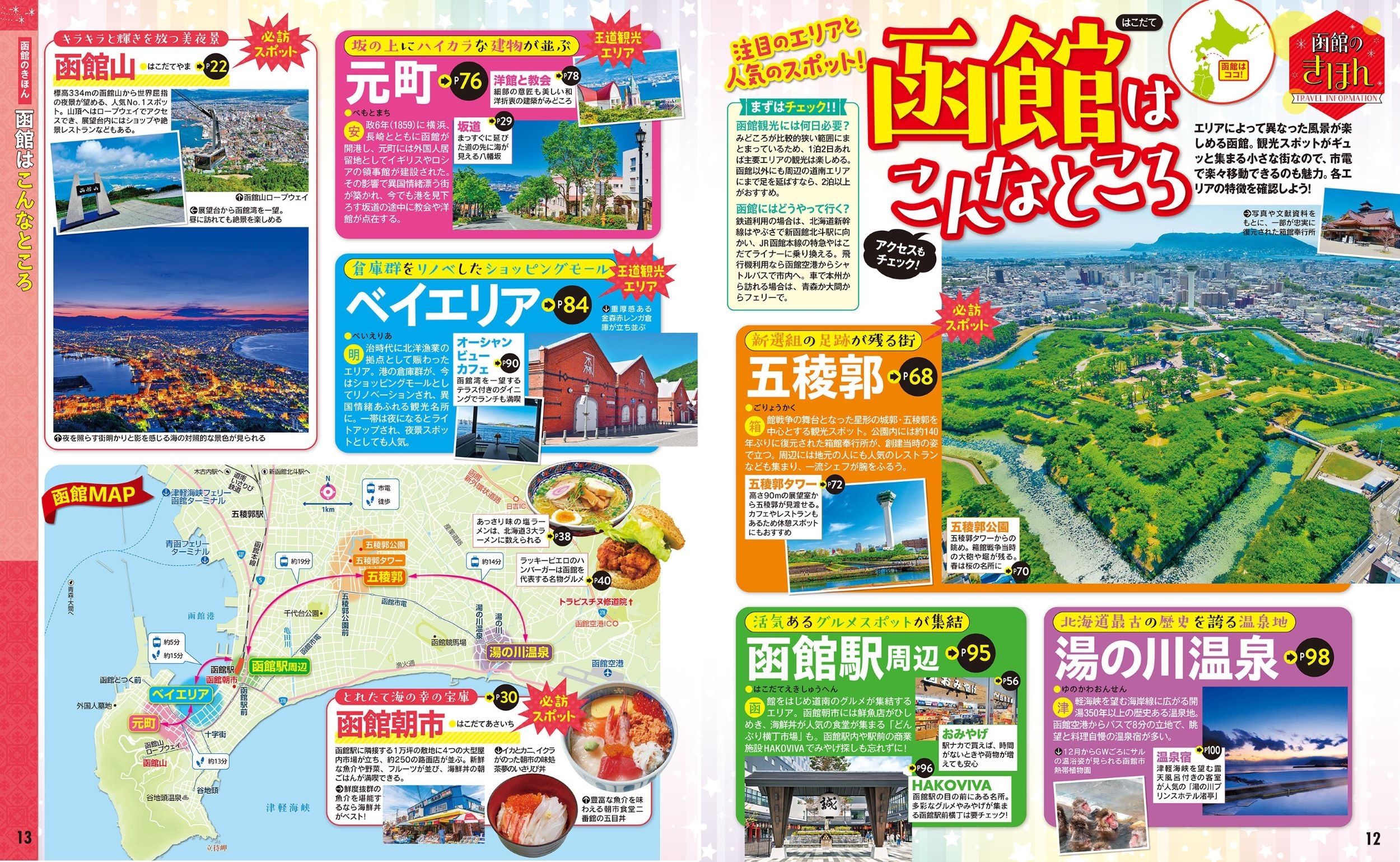 | ◎スマホやタブレットで使える便利な電子書籍付き ◎電子レジャーチケット「200円クーポン」でお得旅 ◎大きくて見やすいサイズ(通常版/25.7×21cm)と、持ち運びに便利な「超ちいサイズ」(18×14.7cm)の2つのサイズ展開!こちらは「超ちいサイズ」の商品ページです。 函館出身のロックバンド GLAYが巻頭インタビュー頁に登場!観光名所の函館山夜景、五稜郭、函館朝市なども徹底ガイド。モデルコースや交通案内などのお役立ち情報も満載で、初心者にもリピーターにも嬉しい一冊です。 <主な特集内容> 【巻頭インタビュー】 函館が生んだロックバンド GLAY?函館 4Story 【巻頭特集】 函館山夜景 完全保存版 ・夜景攻略3つのポイント ・夜景を望むレストラン&バー etc. 北海道の海産物がずらり!函館朝市 ・心ゆくまで!朝市を楽しむコツ ・おトク感満載!海鮮丼 etc. はこだてグルメ ・海鮮丼/回転寿司 ・塩ラーメン、ラッキーピエロ etc. Sweetsの街・函館 ・海カフェ ・レトロ&リノベカフェ etc 函館テッパンみやげ 【エリア特集】 ・五稜郭公園/五稜郭タワー ・元町の洋館と教会を巡る元町さんぽ ・ベイエリアさんぽ ・函館駅周辺をフル活用 ・ひと足のばして 湯の川温泉/大沼 etc. 上記のほか、各エリアの名物グルメ、注目宿情報も満載です。 【特別付録】 はこだてタウン&ドライブMAP ・道の駅カタログや函館空港情報も掲載 【掲載エリア】 函館 五稜郭 元町 ベイエリア 函館駅周辺 湯の川温泉 大沼 恵山 木古内 北斗 松前 江差 函館どつく 谷地頭 函館空港 ※200円クーポンの利用期間は図書の販売終了まで ●「るるぶ」は、「みる」「食べる」「遊ぶ」を中心におすすめエリアやスポットを徹底紹介した旅行ガイドブックです。国内・海外あわせて約200のラインナップを展開、2023年でブランド誕生50周年を迎えました! 「るるぶ」の特徴はこちら ・写真が多くてわかりやすい! ・最新情報がたっぷり! ・見やすい地図もついてくる! 初めて訪れる方からリピーターまで、幅広い方々により旅行を楽しんでいただけるガイドブックです。 特別付録は、函館タウン&ドライブMAPのほか、函館へのアクセス情報、道南エリアの道の駅カタログ&函館空港情報も満載。 |
