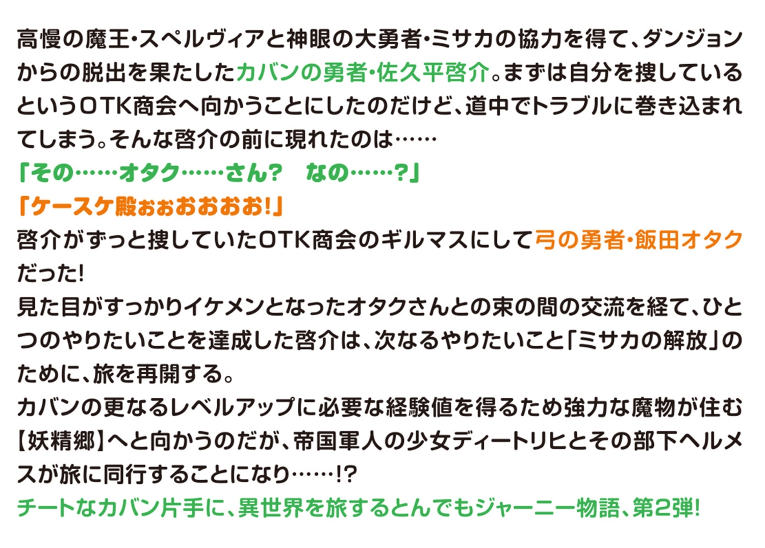 高慢の魔王・スペルヴィアと神眼の大勇者・ミサカの協力を得て、ダンジョンからの脱出を果たしたカバンの勇者・佐久平啓介。