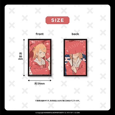 サイズ:W54×H86mm 素材:紙 原産国:日本 ※全5種類のうち1種類をランダムでお届けとなります。 ※ブラインドパッケージのため同じ商品が続けて出る場合がありますのでご了承ください。 ※BOX販売はございません。 |