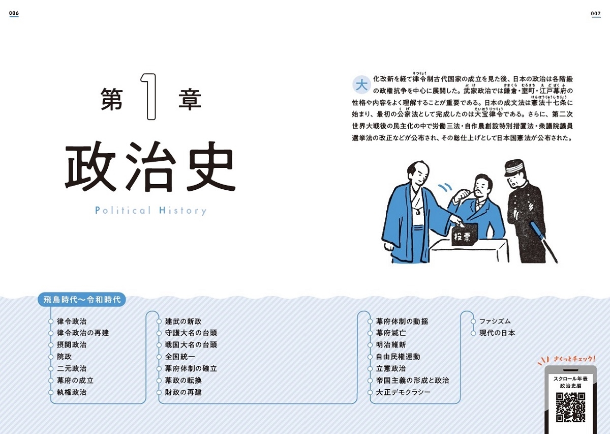 | *流れがひと目で理解できる「テーマ別年表」×わかりやすい「ポイント解説」* 政治史、外交史、文化史、など、テーマ別の年表で日本史探究の要点をしっかり理解! 左ページ:年表&キーワード、右ページ:ポイント解説の見開き構成で読みやすい。 (共通テスト~私大・国公立二次レベル) 【日本史の理解が深まる、テーマ別構成】 第1章 政治史 第2章 外交史 第3章 宗教史 第4章 教育史 第5章 土地制度史 第6章 文化史 【受験対策に役立つ3大特典つき!】 1.別冊「日本史史料51」 日本史探究の入試で頻出の史料を厳選。 史料の本文と訳、ポイントがコンパクトにまとまっている。 本冊とあわせて使用することで、より理解が深まること間違いなし。 2.スマホで見られる「さくっとチェック! スクロール年表」 各章トビラの二次元コードから、各テーマ史の年表を1枚にまとめた 「スクロール年表」をチェックできる。 大まかな流れをさくっと掴むのに役立ち、いつでもどこでも復習が可能。 3.ひと目でわかる「日本史探究年表」 カバー裏にポスターとしても使える年表つき。 書籍の内容をひと目で復習でき、テーマ史同士のつながりも押さえられる。 【著者プロフィール】 前田秀幸 日本史講師。鳥取県生まれ。島根県立松江北高卒、早稲田大学第一文学部を経て、横浜市立大学商学部経済学科 日本経済史専攻 卒業。代々木ゼミナールの実力派講師。「東大の日本史」・「早稲田大の日本史」を担当し、直接教えた受験生は30 万人を超える。図解を駆使したひと目でわかる講義が大好評。歴史の意義を重視した講義は、論述の苦手な受験生にも理解しやすいと評価が高く、毎年、東大・早慶大など難関大学へ多くの合格者を送り出している。さらに、リソー教育・トーマスのマルチライブ放送予備校で「ハイレベル日本史」を担当。その講義は全国の高校などへ配信されている。 |