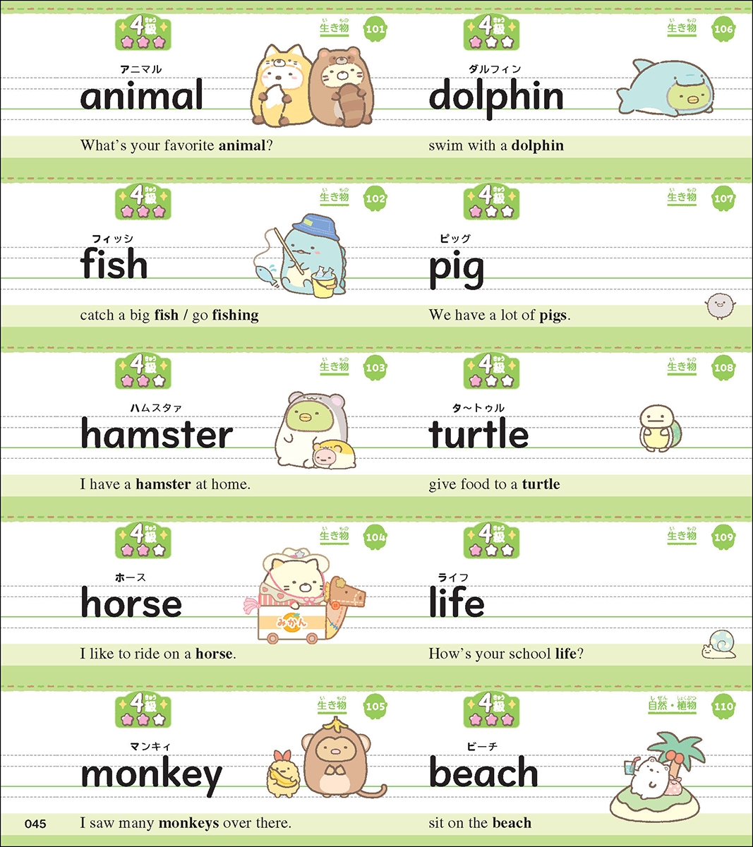 | はじめての英検は すみっコぐらしと一緒に 楽しく始めよう! ★ すみっコぐらしのアートがたっぷりの、英検4級合格に必要な英単語カード700枚。 ★ 4このリングと2種類のかわいい表紙カード付きでオリジナル単語帳が作れる。 ★ カタカナによる読みがな付き、4線付き、全単語に音声付きで、はじめてでも安心。 ★ すみっコたちの絵でまとめて頻出単語などを覚えられるまとめシート8種類付き。 |