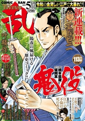 | 令和の金貸しが江戸時代へ? 異色の金融新連載!! 「コミック乱ツインズ5月号」は…… 累計113万部突破の超一級時代劇『鬼役』が表紙に登場!! 巻頭カラーを飾るのは江戸の男女の性と罰を描く『江戸の不倫は死の香り』 そのほか悪徳金融マンが江戸に立つ金融コメディ新連載『エドゼニ』、人気艶絵師の新連載第2話『紅と藍』、人気絶頂浪漫時代劇『ビジャの女王』など、豪華連載陣が熱筆!! |