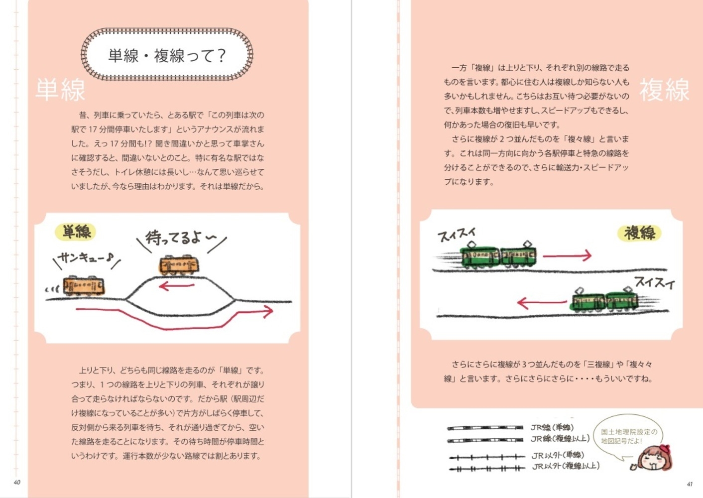 | 鉄道や鉄道旅は、詳しくない人にはとっつきにくいイメージがあり、初心者がネットなどで調べようにも、どう調べたらいいか分からない、調べても理解しづらいとよく耳にします。 本書の著者、やすこーんさんも、もとはそんな1人でした。自身が鉄道や鉄道旅に興味を持った頃に分からなかったこと、調べたり聞いたり、さらに失敗したことを1冊にまとめ、分かりやすく解説したのが本書になります。 本書では「鉄道知識と旅の基本」というタイトルの通り、旅に役立つ情報はもちろん、知っておくと旅で役立つ鉄道知識も解説しています。鉄道知識に触れるのは、鉄道旅をより楽しみ、失敗をしないためには、マニアックと敬遠されがちな鉄道についても少しは知っておくことが重要だからです。 とはいえ、そこは漫画家。得意なイラストを駆使することで、初心者でも絵で見て理解しやすくまとめられているのが本書の特徴です。鉄道に興味を持ちたての方、鉄道旅を楽しみたい方にオススメの入門書です。 |