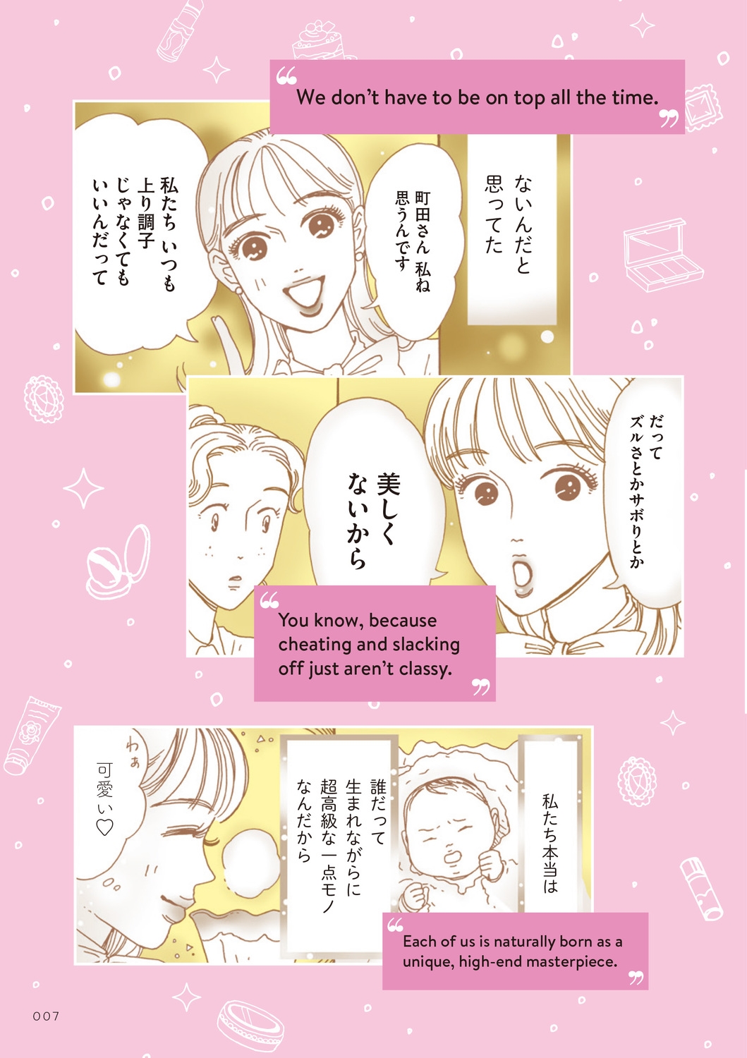 | 累計100万部突破の超人気・最強OLの痛快コミック 『メンタル強め美女白川さん』で、 英語が学べて、ポジティブにもなります! ・私のモットーは「私もキレイ あの子もキレイ」だし みんな可愛くてハッピーじゃん むしろ世界平和じゃん ・私の辞書にヒガミという文字はない ・嬉しいか嬉しくないかは私が決めるから ・だってそんな失礼な人間の美意識とか 信用するに値しなくないですか? 白川さんの心がスッキリする名セリフを英語でも! 原作ファンはもちろん、英語初学者にもピッタリで、 マンガのように楽しく読めます。 英文執筆・解説は英語講師の神林サリー先生! わかりやすい説明で、日常会話でも使える表現を学べます。 【目次】 第1章 心が軽くなるポジティブフレーズ! 第2章 気持ちを伝える感情フレーズ! 第3章 会話がはずむ日常フレーズ! |