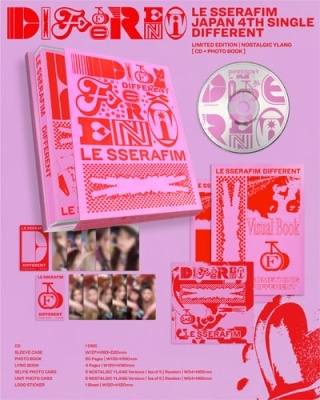 | LE SSERAFIM 日本4thシングル 'DIFFERENT'のリリース決定! 初回限定盤Bには、フォトブック(60P)が付属するほか、リリックブック (4P)、セルフィーフォトカード (1枚) ※全5種のうちランダム1種、ユニットフォトカード (1枚) ※全5種のうちランダム1種、ロゴシール (1枚) を封入。 |