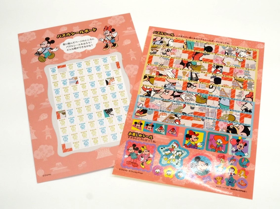 ●パズルシール:1ページ取り組んだ後にシールを1枚貼っていき、1冊終わるとディズニーキャラクターのイラストが完成します。