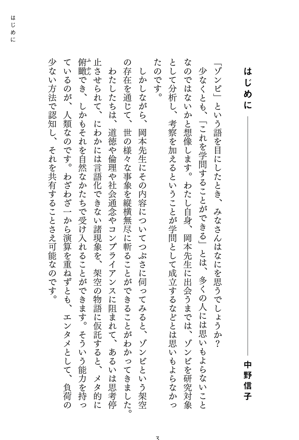 | 脳科学者である中野信子とメディア・コンテンツの研究者ながらVtuber「ゾンビ先生」としても活躍する岡本健がゾンビというフィルターを通して社会を捉え直した1冊。 中野信子 「岡本先生とのセッションはとにかく毎回楽しくて、議論が発散して思考が拡がっていく喜びを味わいました。制限を受けずに知的遊びができる方に出会うことのできる機会はなかなかありません。対談が終わってしまうのは、なんだかさみしく感じられたものでした。きっとわたしは、あとで本書を何度も読み返して、『あんなことも話したかった、こんなことも話せばよかった』と思うでしょう」 岡本健 「中野信子先生とお話をした後は、いつも頭がアツくなります。(略)対談は三回にわけて行われたのですが、毎回話題がどこに転がるかわからないスリリングな時間であるとともに、『どっちに転がっても面白くなる』という安心感がそこにはありました」 【内容について】 本書では、ホラーエンタメとしてのゾンビ映画の歴史を辿りながら、それがどのように社会を映し出す鏡となってきたのかを考察。ブードゥー教に端を発するゾンビが、科学の力で生み出される存在へと変化し、さらには「走るゾンビ」や「意識を持つゾンビ」が登場する中で、人間の階層社会や個と集団の関係性、そして現代人の「思考停止」や「リセット願望」といった心理が浮き彫りになります。 「ゾンビは、人間社会の歪みを鮮やかに描き出す媒介変数である」と語る二人の知的なセッションは、時に脱線しながらも、人間がなぜ物語を必要とし、変化を求めるのか、そして「終わりなき日常」をどうサバイブしていくのかという根源的な問いへと繋がります。ゾンビを介して、人間と社会の奥深さを探求する一冊です。 |
