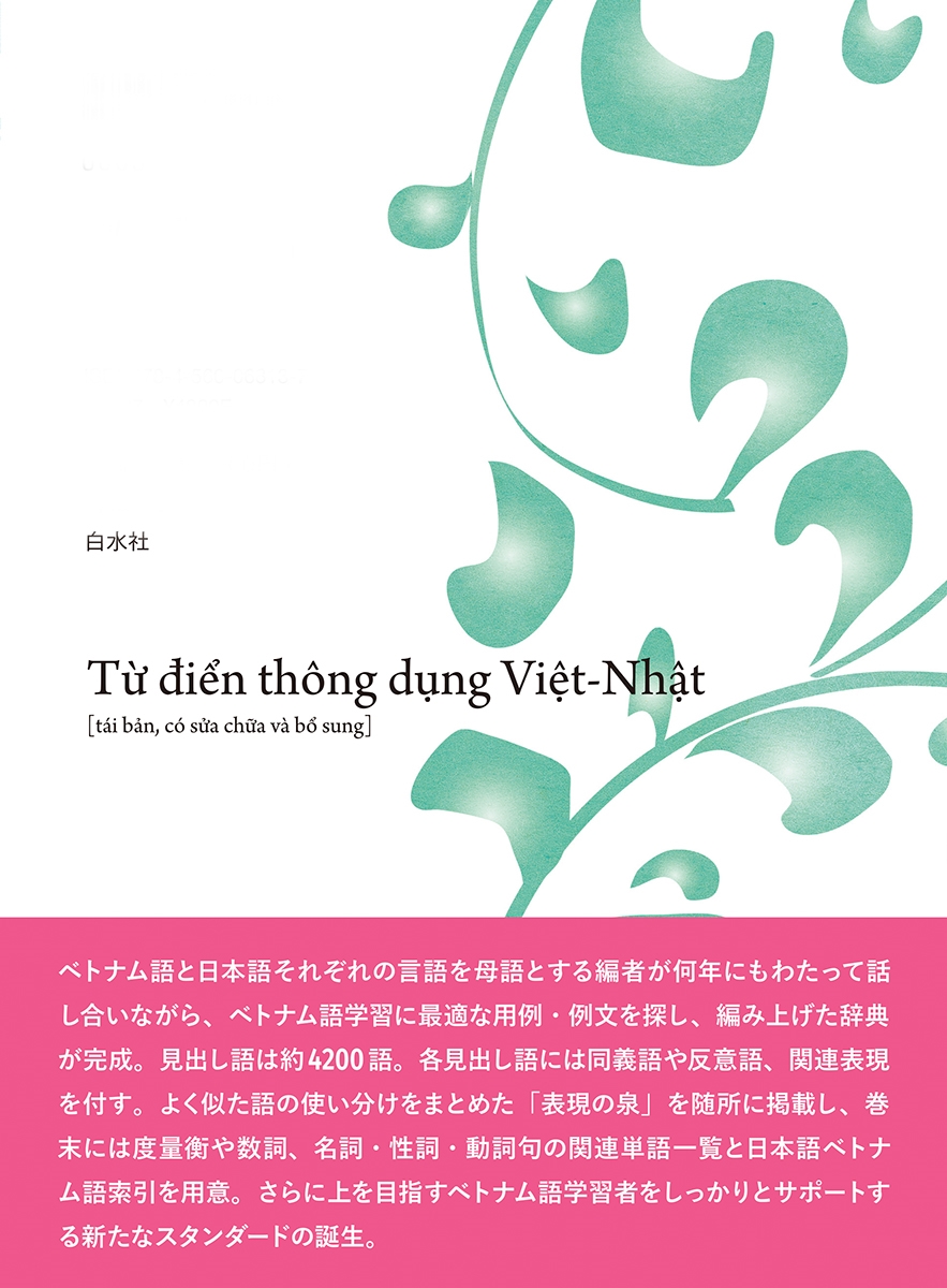| ベトナム語学習の新定番がさらに使いやすく ベトナム語と日本語それぞれの言語を母語とする編者が何年にもわたって話し合いながら、学習に最適な用例・例文を配した日本で最も愛用されているベトナム語辞典の改訂版。それぞれの語が持つイメージの理解を促し、よく似た語の使い分けなど、学習者が苦労する点をしっかりとサポート。「ベトナム語らしさ」が身につきます。見出し語は約4200語。各見出し語には同義語や反意語、関連表現を付す。巻末には数詞、関連単語を集めた「単語の泉」、日本語ベトナム語索引等を掲載。 |