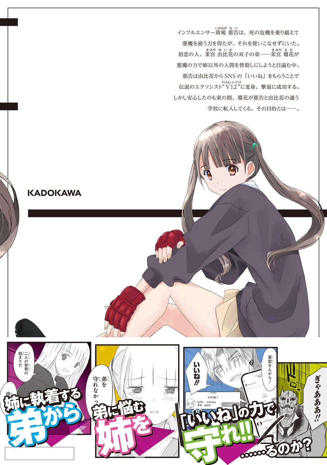 | イケメンインフルエンサーがスタイリッシュバトルするはずだったのに!? 恋焦がれた由比花に会うために日本に戻ってきた那告。しかし瑠花の悪魔召喚により悪魔にされてしまった。一命はとりとめたものの、花梨から3メートル以上離れると悪魔に変身してしまう体になってしまい……。 |