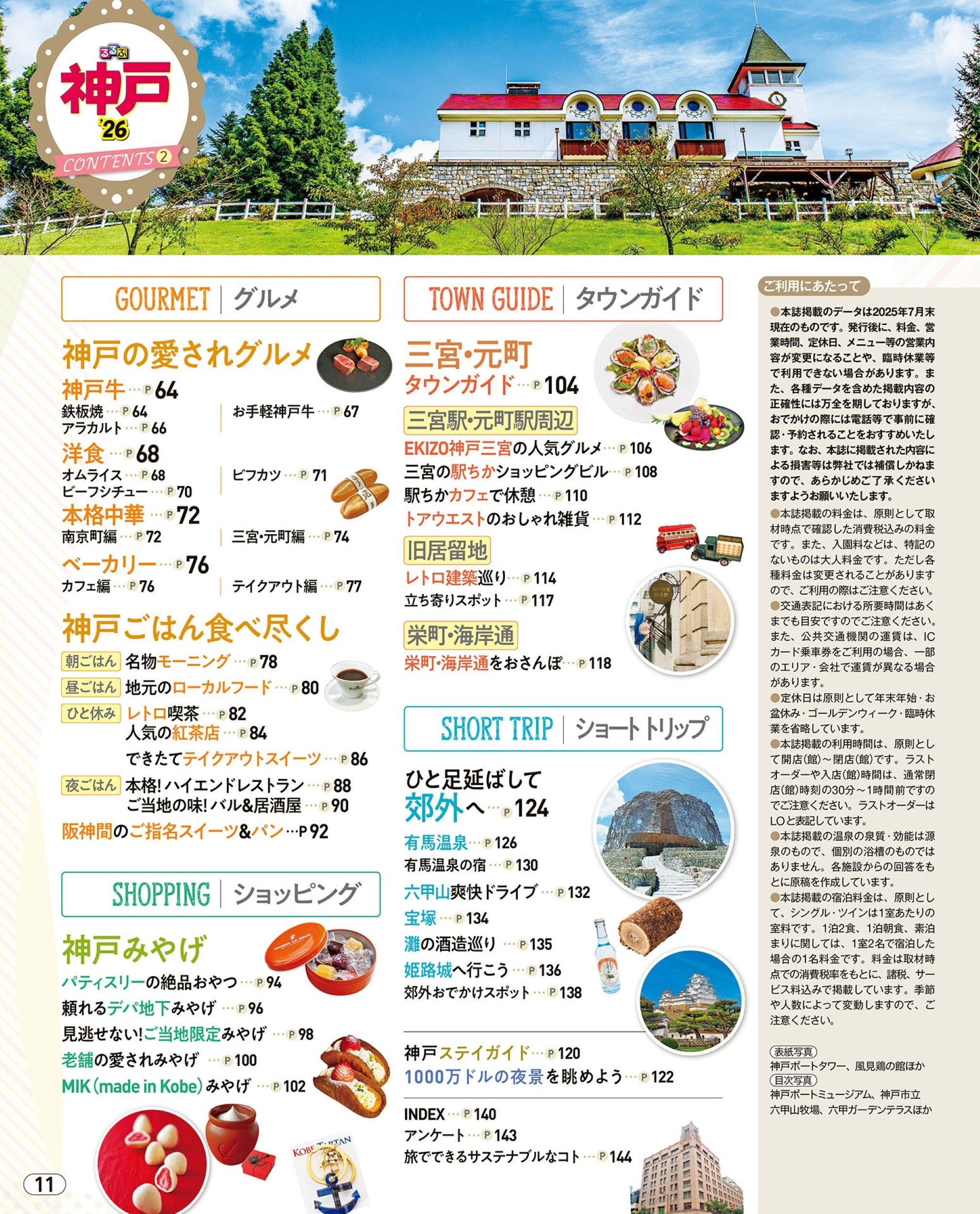 | ◎スマホやタブレットで使える便利な電子書籍付き ◎電子レジャーチケット「200円クーポン」でお得旅 ◎大きくて見やすいサイズ(通常版/25.7×21cm)と、持ち運びに便利な「超ちいサイズ」(18×14.7cm)の2つのサイズ展開!こちらは通常版の商品ページです。 話題のベイエリア、人気の北野、チャイナタウン・南京町を徹底ガイド。 定番の神戸牛や洋食のほか、絶景カフェやおしゃれなスイーツ店など最新情報も満載! <主な特集内容> 【巻頭特集1】今、いちばん新しい神戸であそぶ ・今まで行けなかった屋上展望台へ:神戸ポートタワー ・人気菓子店の本店別館でバームクーヘンを食べ放題!?:ユーハイム本店別館 ・最新グルメスポットで食べる!買う!:北野ノスタ・ラスイートルパンビル etc. 【巻頭特集2】神戸パーフェクトモデルプラン 【エリア特集】 ◆神戸の王道3大エリア/ベイエリア ◆神戸の王道3大エリア/北野 ◆神戸の王道3大エリア/南京町 ◆三宮・元町 タウンガイド ◆郊外おでかけスポット 【グルメ・みやげ特集】 ◆神戸の本命グルメ ◆朝から晩まで食べつくす 神戸ごはん ◆神戸とっておきみやげ 上記のほか、各エリアの名物グルメ、注目宿情報も満載です。 【特別付録1】 神戸スイーツ&カフェBOOK ・名パティシエの注目店 ・神戸発祥の有名店の本店&直営サロン ・大人の夜カフェ etc. 【特別付録2】 神戸まち歩きMAP 【掲載エリア】 兵庫県 神戸 北野 南京町 ベイエリア 三宮 元町 旧居留地 栄町 海岸通 トアウエスト トアイースト ハーバーランド メリケンパーク ポートアイランド 阪神間 有馬温泉 六甲山 宝塚 灘 姫路 ※200円クーポンの利用期間は図書の販売終了まで ●「るるぶ」は、「みる」「食べる」「遊ぶ」を中心におすすめエリアやスポットを徹底紹介した旅行ガイドブックです。国内・海外あわせて約200のラインナップを展開、2023年でブランド誕生50周年を迎えました! 「るるぶ」の特徴はこちら ・写真が多くてわかりやすい! ・最新情報がたっぷり! ・見やすい地図もついてくる! 初めて訪れる方からリピーターまで、幅広い方々により旅行を楽しんでいただけるガイドブックです。 特別付録1 スイーツ&カフェBOOK…最旬スイーツから定番まで、気になるスイーツが盛りだくさん! 特別付録2 神戸まち歩きMAP…見やすい地図と交通ガイドで神戸の旅を快適にサポート |