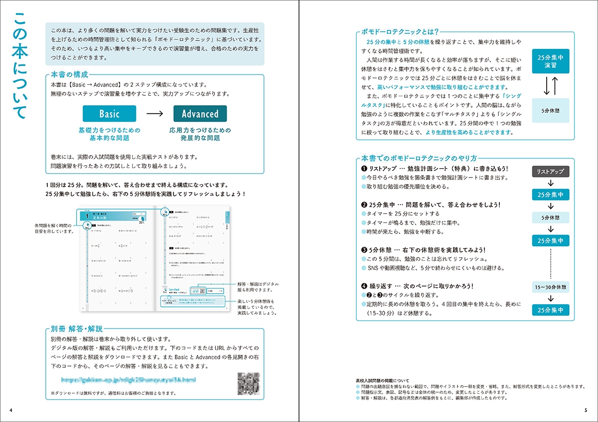この本は効率的な学習サイクルで、日々の学習のパフォーマンスを高め、高校入試に向けた実力をつけるための問題集です。