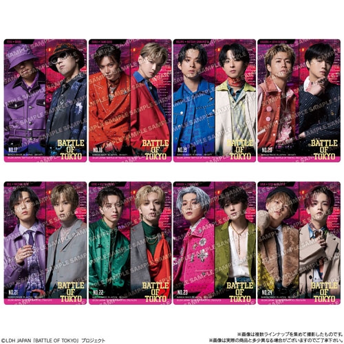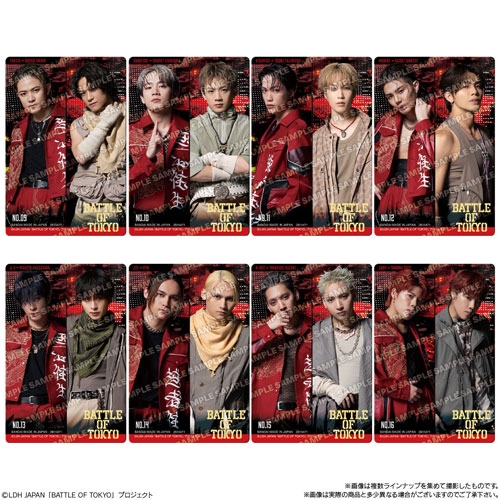 | 「BATTLE OF TOKYO」のカード付きツインウエハース登場! 歴代ビジュアルをレイアウトした写真面×新規イラスト面の両面フルデザインのメタリックプラカードで、全45種のラインナップ! |