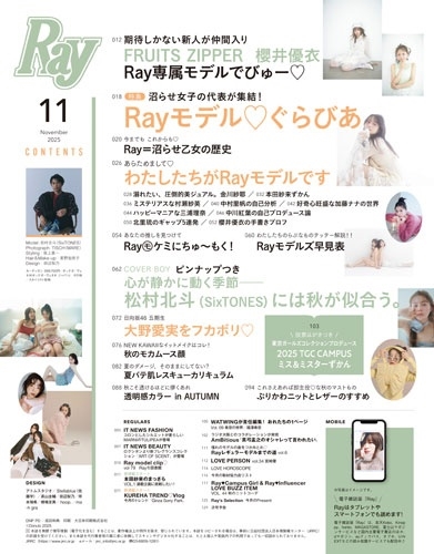 | 特集 沼らせ女子の代表が集結!Rayモデル ぐらびあ/ピンナップ付き 松村北斗(SixTONES)/FRUITS ZIPPER 櫻井優衣 Ray専属モデルでびゅー/表紙 松村北斗(SixTONES) |
