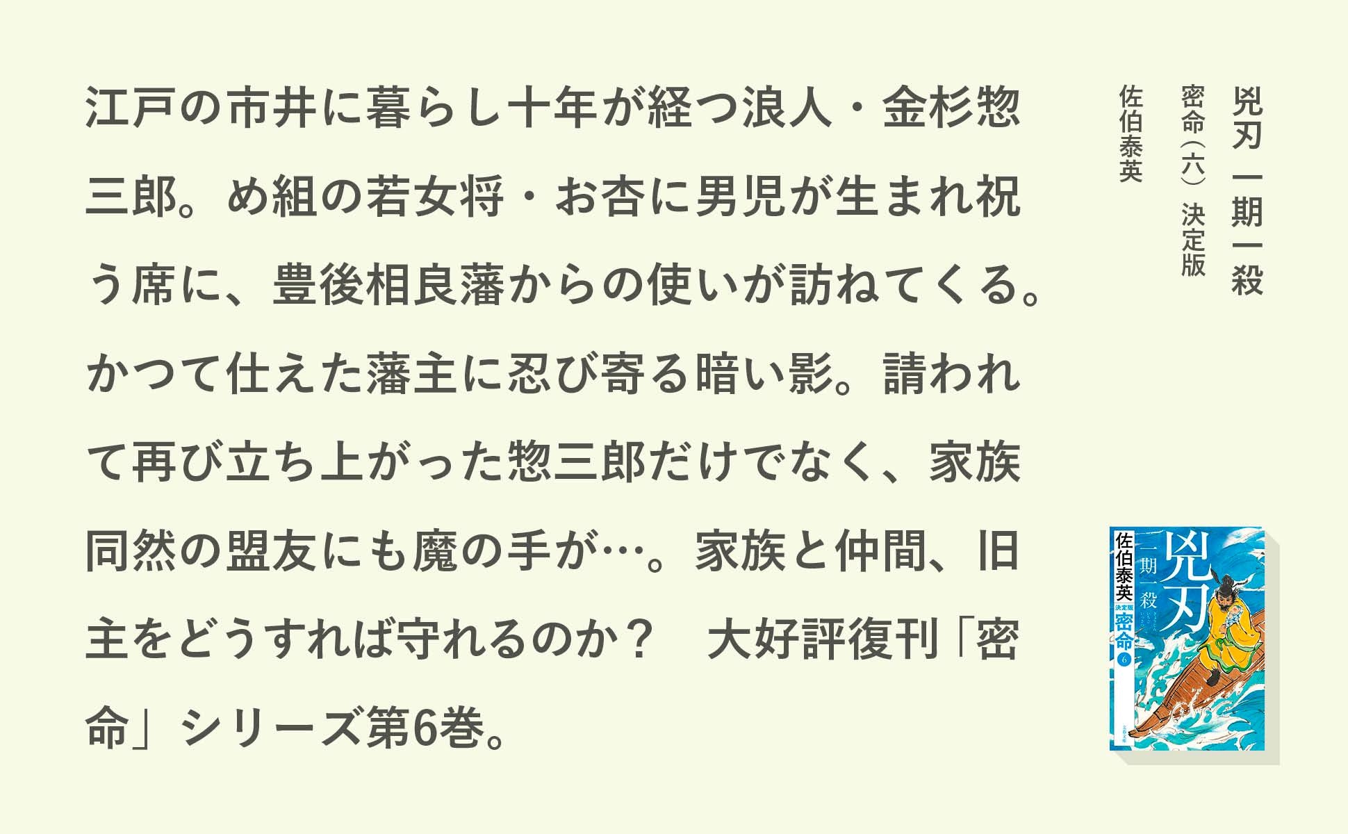 佐伯泰英 「兇刃 一期一殺 密命(六)決定版」 Book