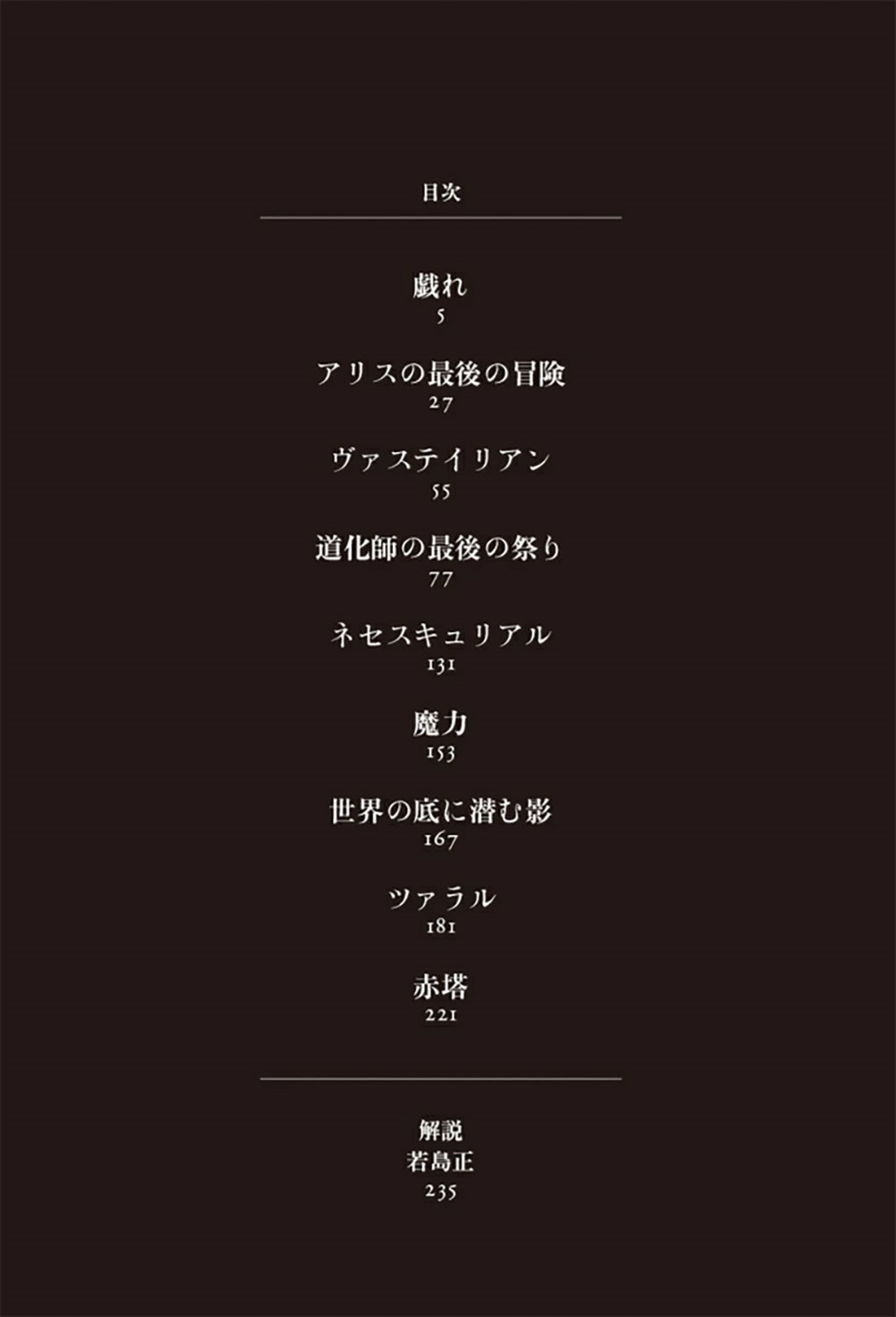 | 「キングがホラーの達人なら、リゴッティはホラーの化身だ。」(ニューヨーク・タイムズ)――祈りなのか、呪いなのか。アメリカのカルト作家による救済なき傑作群が、本邦初単行本化。 ・ 「そう、この世界の人々が、神ならぬ新たな神の存在に勘づいていることを漏らしてしまったのは、せいぜい一世紀前のことだった。」 ・ H・P・ラヴクラフトやフィリップ・K・ディックと並び称され、ブラム・ストーカー賞を4度受賞した、文学史上最も危険な作家が、ついに上陸! ・ ・ 【目次】 ・ 戯れ (若島正 訳) アリスの最後の冒険 (白石朗 訳) ヴァステイリアン (若島正 訳) 道化師の最後の祭り (宮脇孝雄 訳) ネセスキュリアル (若島正 訳) 魔力 (若島正 訳) 世界の底に潜む影 (若島正 訳) ツァラル (若島正 訳) 赤塔 (若島正 訳) ・ 編者あとがき 若島正 |