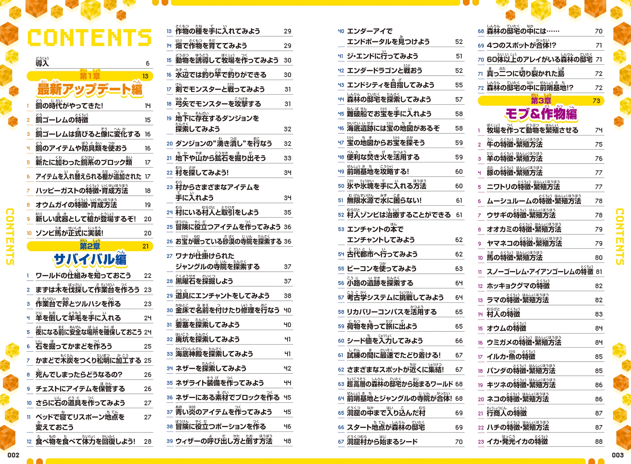 | これでマイクラがまるっと分かる! 人気のマインクラフトを、最新情報に基づきまるごと攻略!! はじめての人でもマイクラをとことん遊び尽くせる、とてもわかりやすい攻略本です。 基本の操作方法からゲームの進め方、サバイバルモードでの必須テクニックや敵モブの倒し方・動物の繁殖方法、効率の良い作物の育て方、建築ガイド、レアスポット満載の神シード集、便利で役立つレッドストーン回路や楽しいコマンド技もわかりやすく基礎から解説しています。 また、最新アップデート「銅の時代」についても、巻頭で詳しく紹介・攻略しています。 これ一冊でマイクラがしっかりわかります! なお、本文オールカラーで、漢字にはふりがなが付いているためたいへん読みやすくなっております。 ●目次 導入~マインクラフトの操作のキホン 【第1章】最新アップデート(銅の時代) 編 【第2章】サバイバル 編 【第3章】モブ&作物 編 【第4章】レッドストーン知識 編 【第5章】建築 編 【第6章】コマンド 編 【第7章】主要アイテムレシピ集 |