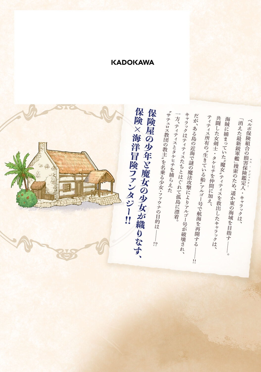 | 邪悪な魔女の狙いは保険!? 魔女vs魔女の戦いの行方は--!? 謎の魔法による攻撃を受けたアルゴー号。ティティスは"奇跡の力"を使う魔女に捕らえられ、はぐれたキャラックは保険屋を嫌う謎の女性と出会う。保険屋と魔女、それぞれの矜持を持ってピンチに立ち向かう--!! |