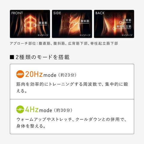 2種類のモードを搭載し、有酸素運動や筋トレとの併用も可能。