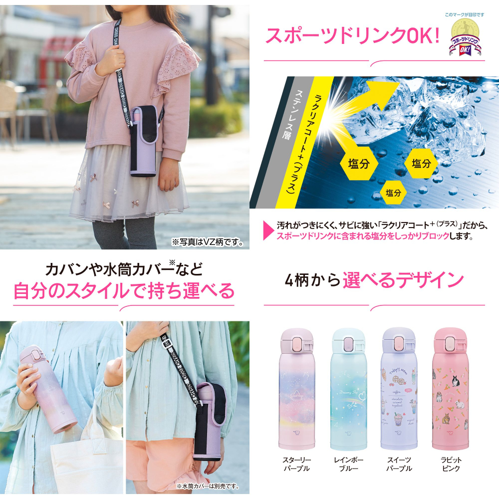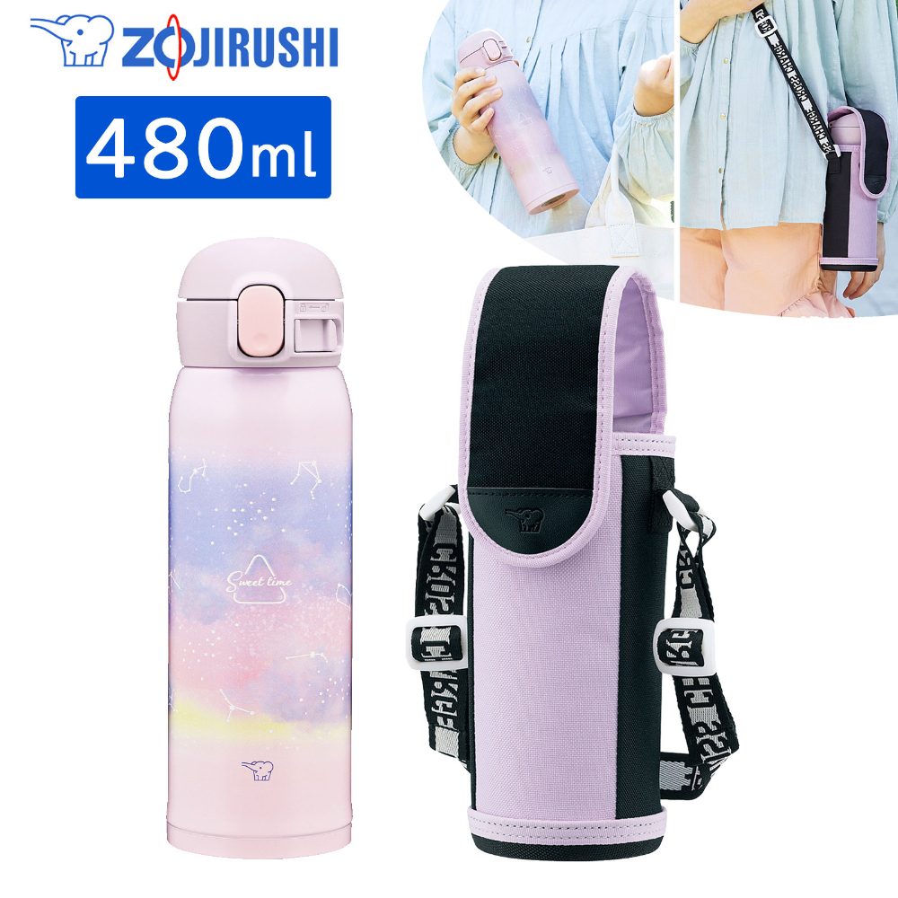 象印マホービン 【在庫処分特価】 ステンレスボトル 専用ボトルカバーセット 子供向け 480ml スターリーパープル ワンタッチタイプ シームレスせん お手入れ点数3点 水筒 ボトル 幼稚園 小学校 入園 入学