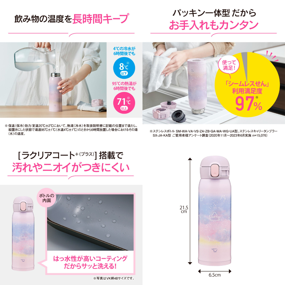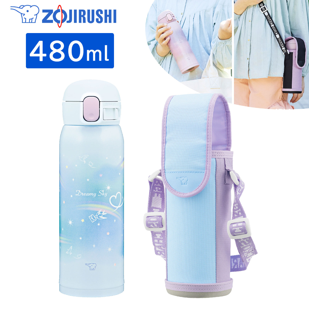 象印マホービン 【在庫処分特価】 ステンレスボトル 専用ボトルカバーセット 子供向け 480ml レインボーブルー ワンタッチタイプ シームレスせん お手入れ点数3点 水筒 ボトル 幼稚園 小学校 入園 入学