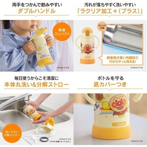 アンパンマン ステンレスクールボトル 子供向け 320ml ベビーマグ ストローボトル ダブルハンドル 持ち手 水筒 赤ちゃん 乳児 FK-SQ-DB30A-EY