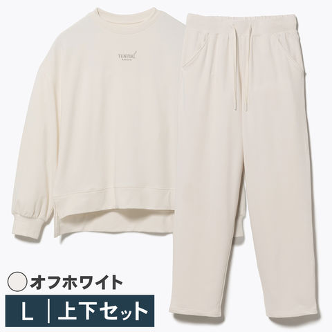 BAKUNE RECOVERY WEAR Ladies オフホワイト L 上下セット Sweat Shirt Tapered Pants